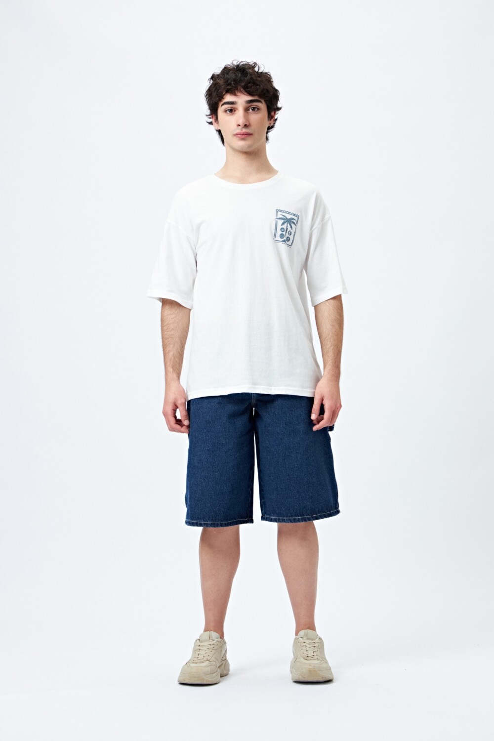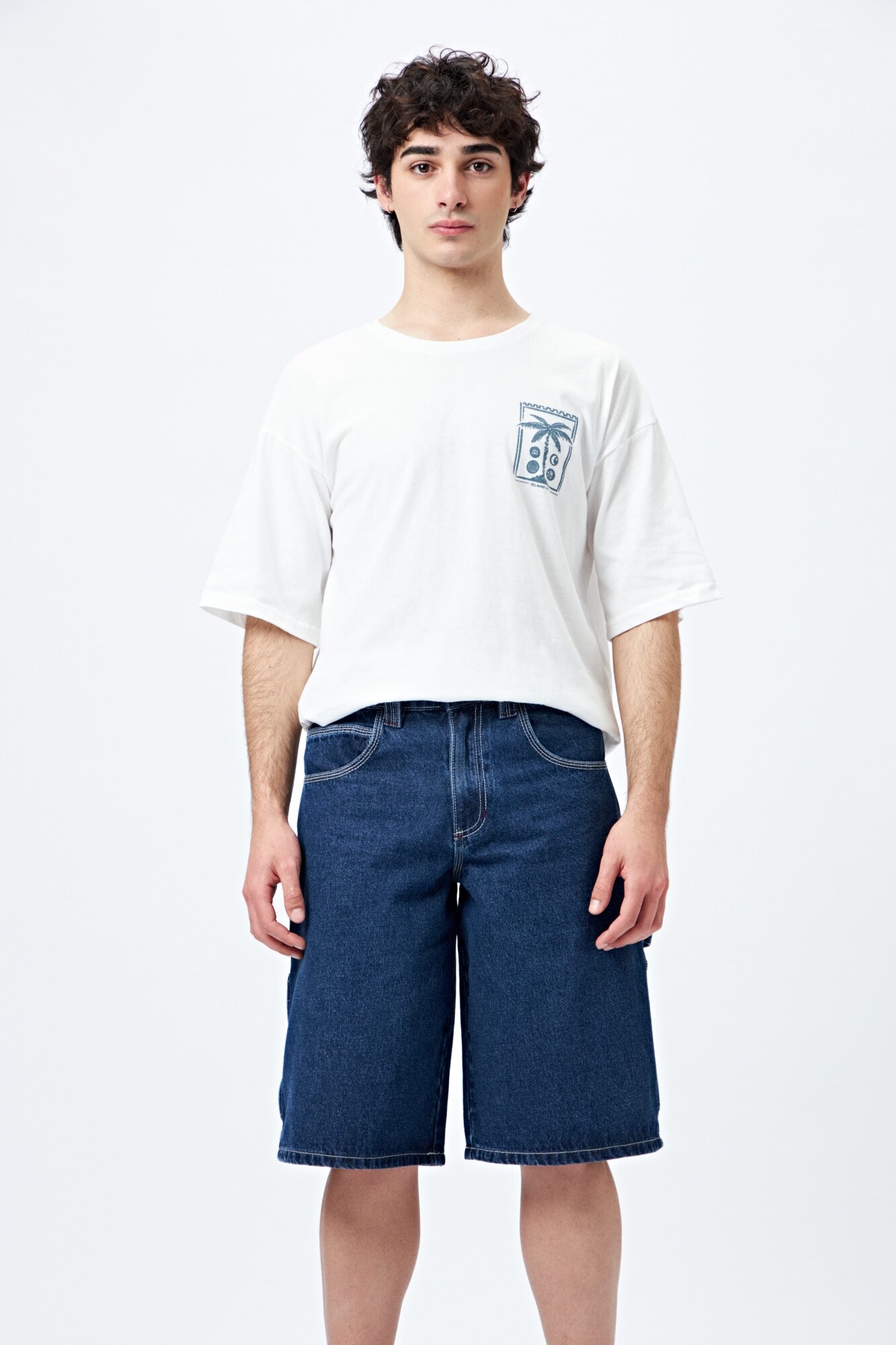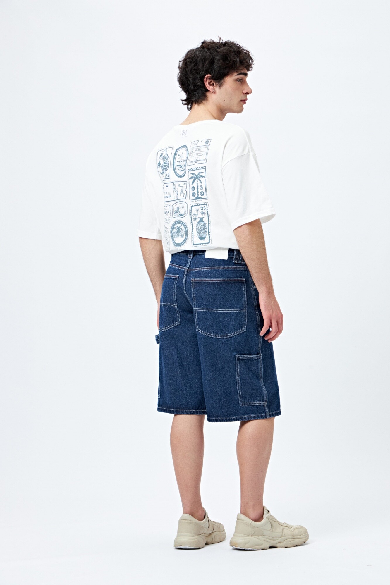 Bermuda carpenter de denim con fit relaxed y largo por encima de la rodilla. Con costuras visibles y múltiples bolsillos funcionales, aporta ese aire utilitario que la hace trendy y canchera. Una prenda sin género, pensada para todos los estilos.