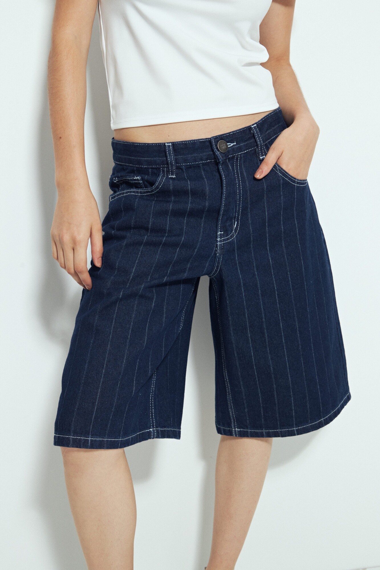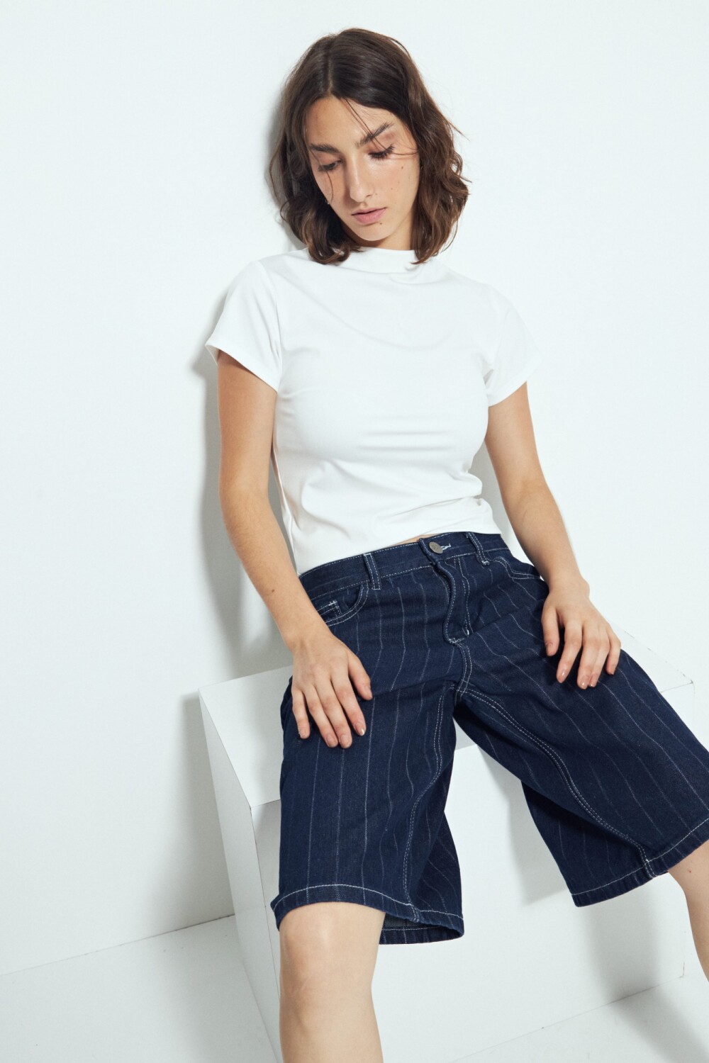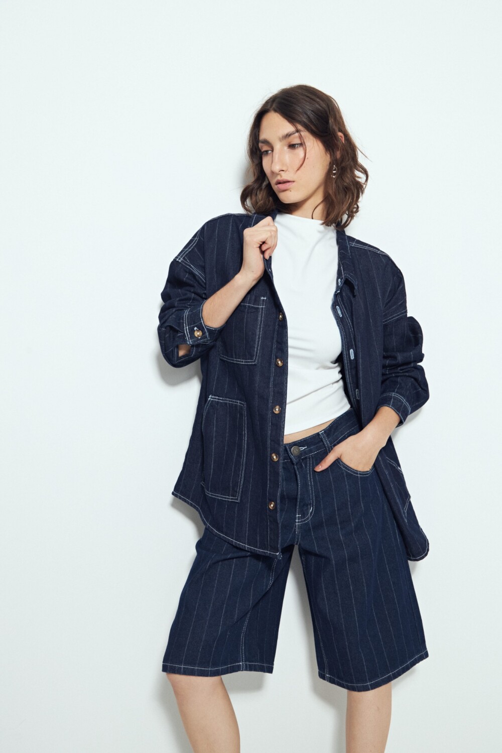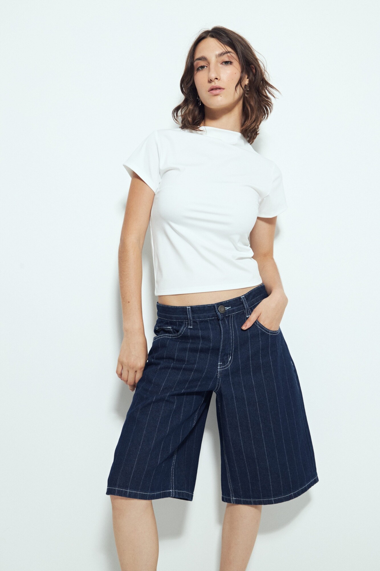 Bermuda de denim con rayas verticales que reinterpretan un clásico del guardarropa desde una mirada actual. Las rayas son un recurso atemporal en la moda: estilizan visualmente la silueta y aportan un aire sofisticado que nunca pasa de moda. Hoy vuelven con fuerza como tendencia, adaptándose a prendas relajadas y versátiles como esta bermuda de calce cómodo y espíritu urbano. Una pieza que combina lo clásico y lo contemporáneo, ideal para sumar carácter a looks de todos los días.