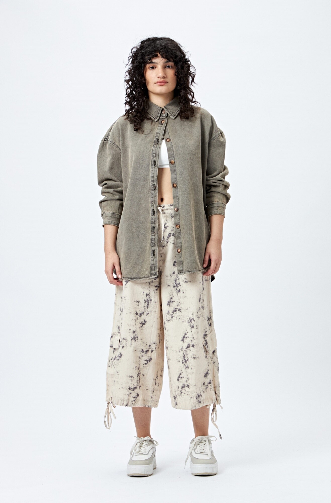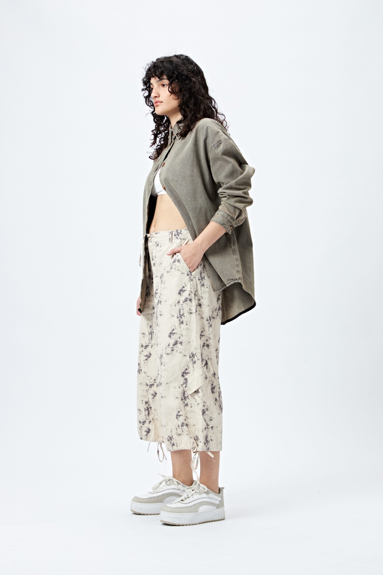 Piece of Cake BERMUDA SKATER PRINT BERMUDA SKATER PRINT La prenda estrella para marcar estilo. Con su fit oversized y las tiras ajustables en el ruedo, esta bermuda se mueve entre lo urbano y lo alternativo con total naturalidad. El detalle de los bolsillos cargo suman actitud utilitaria, mientras que los prints —camuflado o batik— la convierten en un lienzo de pura personalidad. Una pieza que rompe moldes y se adapta a todos los géneros, pensada para acompañar looks con zapatillas chunky, camisas abiertas o hoodies oversize. 426114503602070