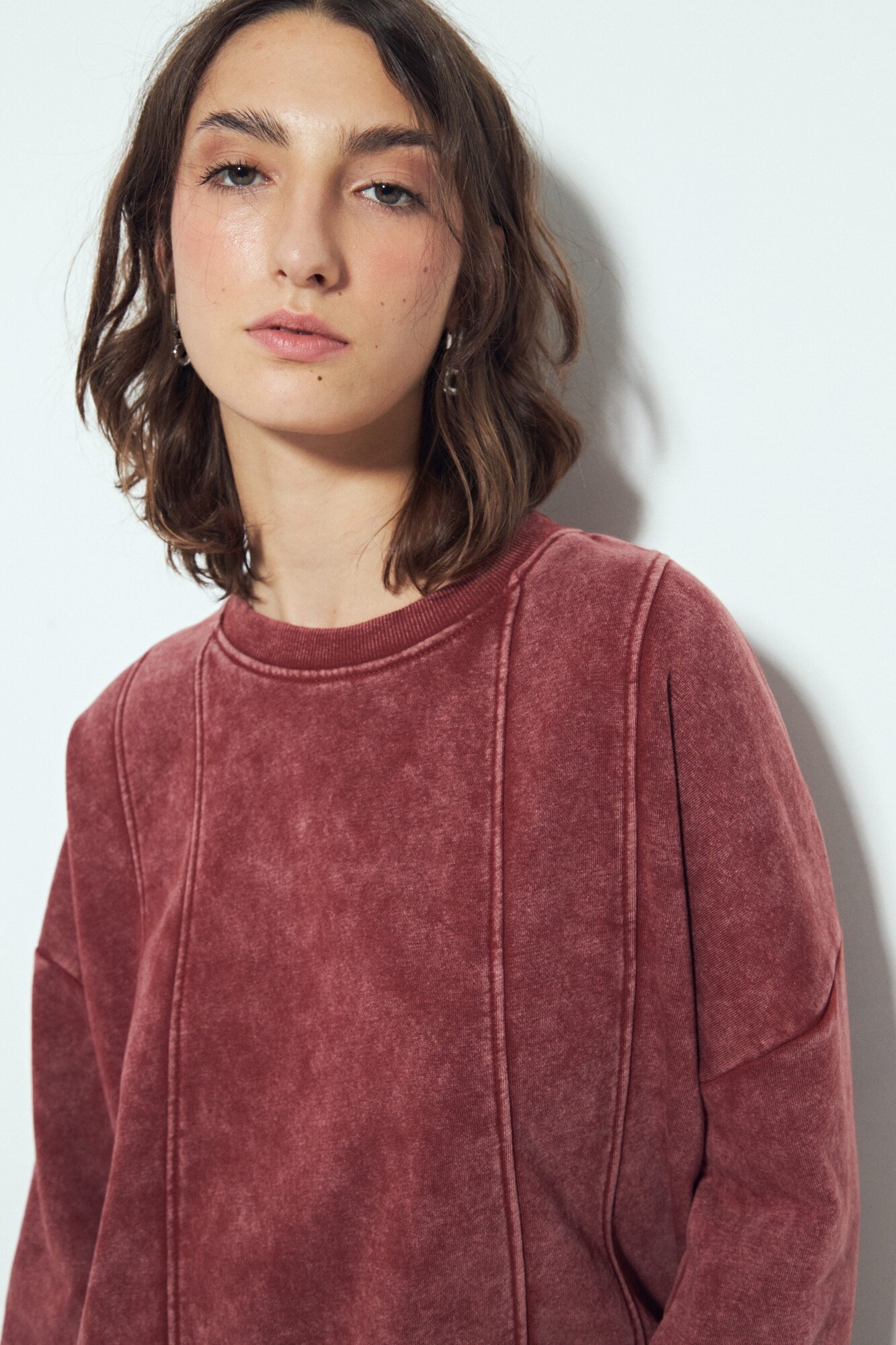 Buzo de calce relajado con un marcado efecto lavado que aporta un look desgastado y contemporáneo. El diseño se destaca por las costuras verticales a la vista, que estilizan la silueta y suman un detalle diferencial de inspiración urbana. Su estructura cómoda y versátil lo convierte en una prenda ideal para elevar outfits diarios con un aire moderno y descontracturado. Una pieza clave para elevar cualquier look.
