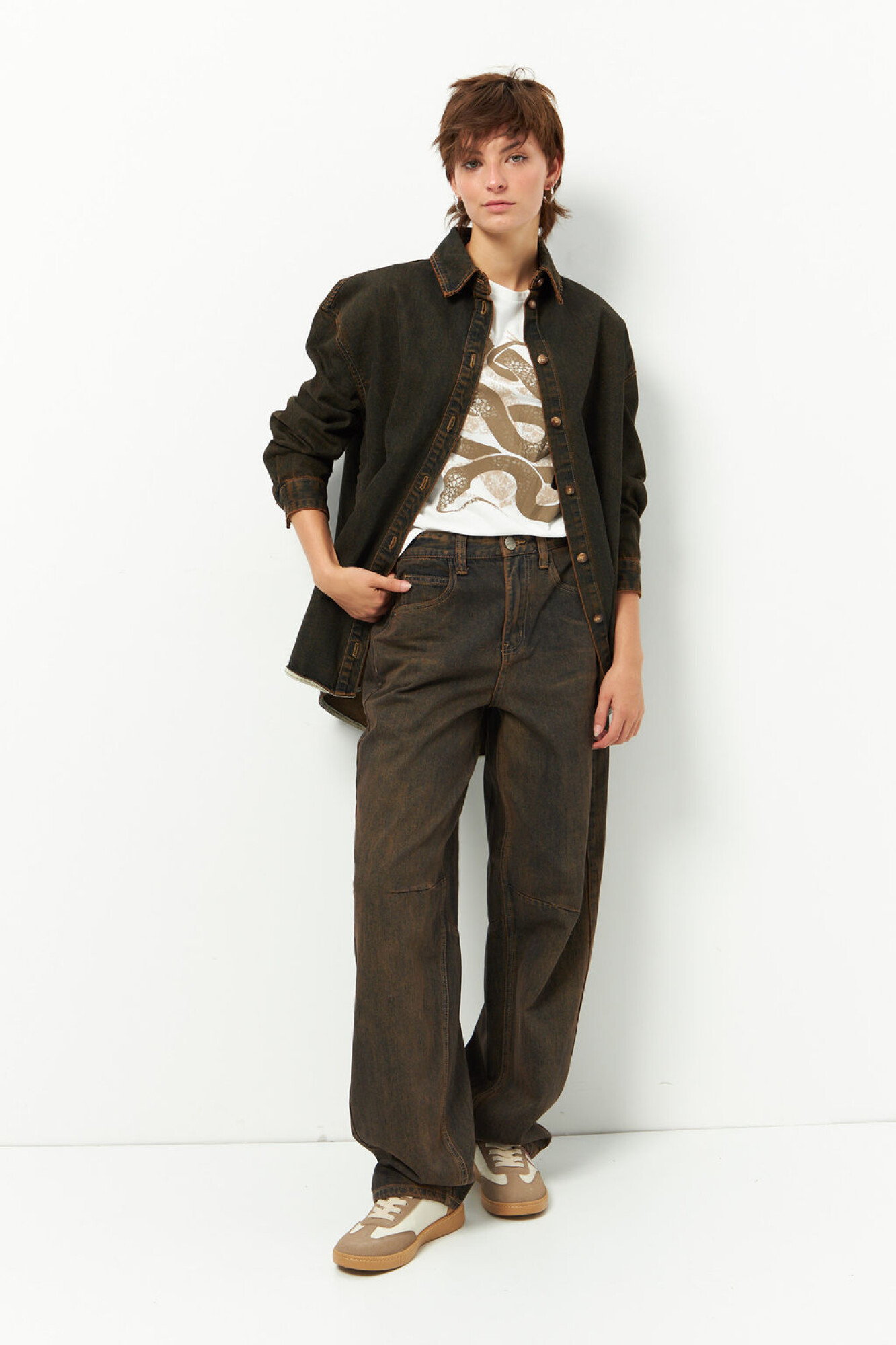 Usala como camisa o sobrecamisa! La Camisa Patrick es esa prenda atemporal que va con todo, de manga larga, de un jean lavado que cancheriza cualquier look, cuenta con botones veteados y es súper fresca.