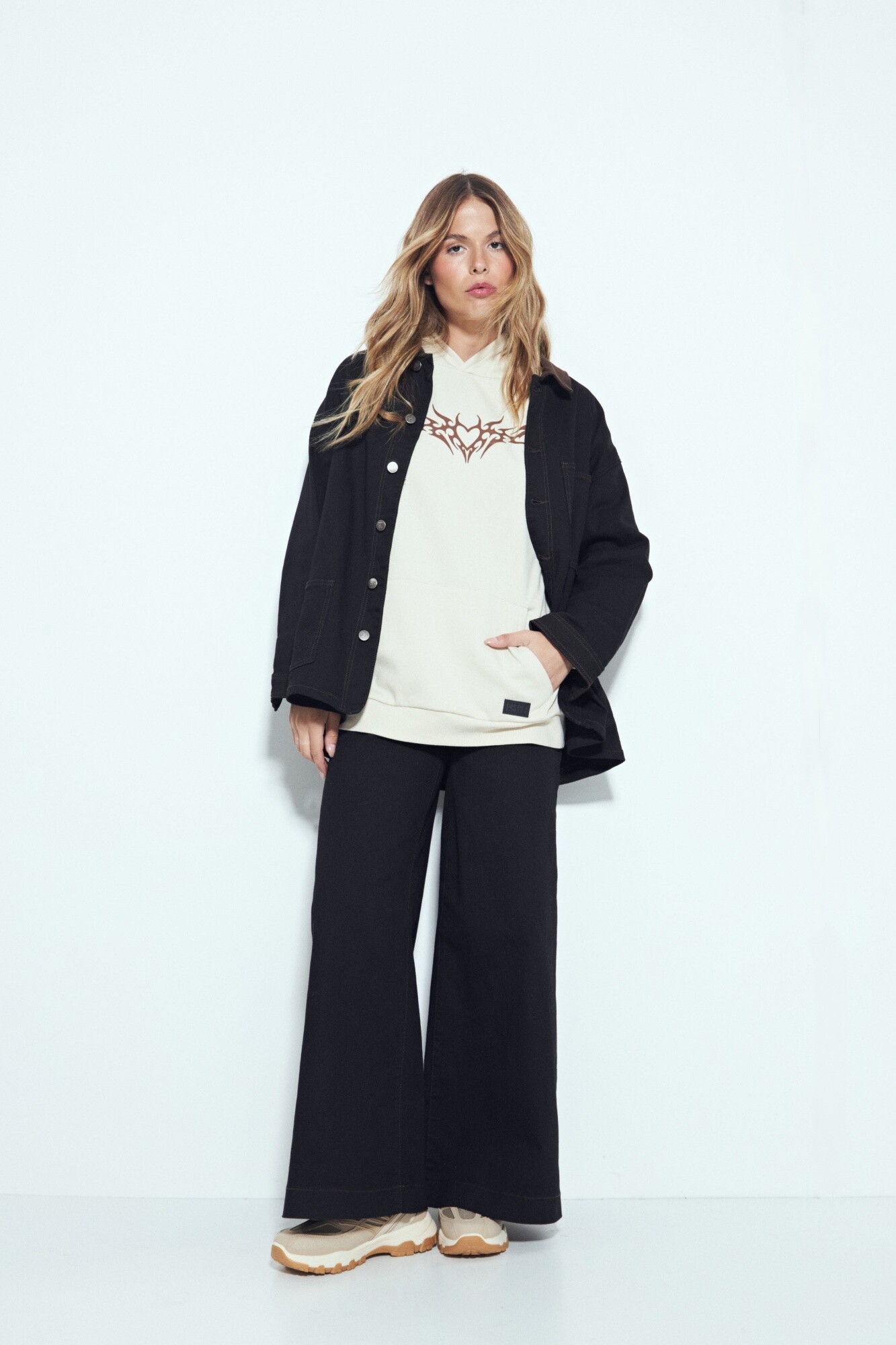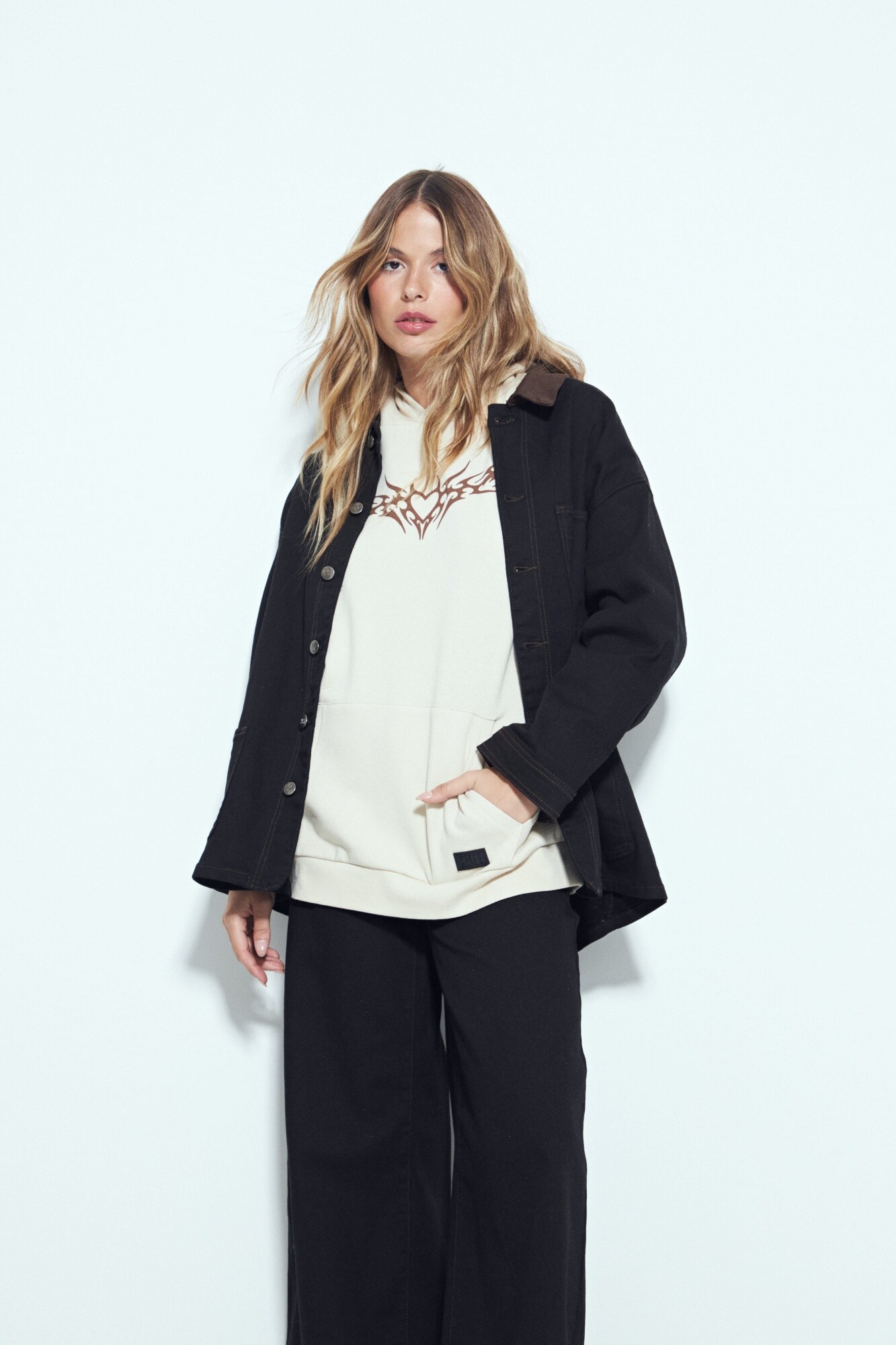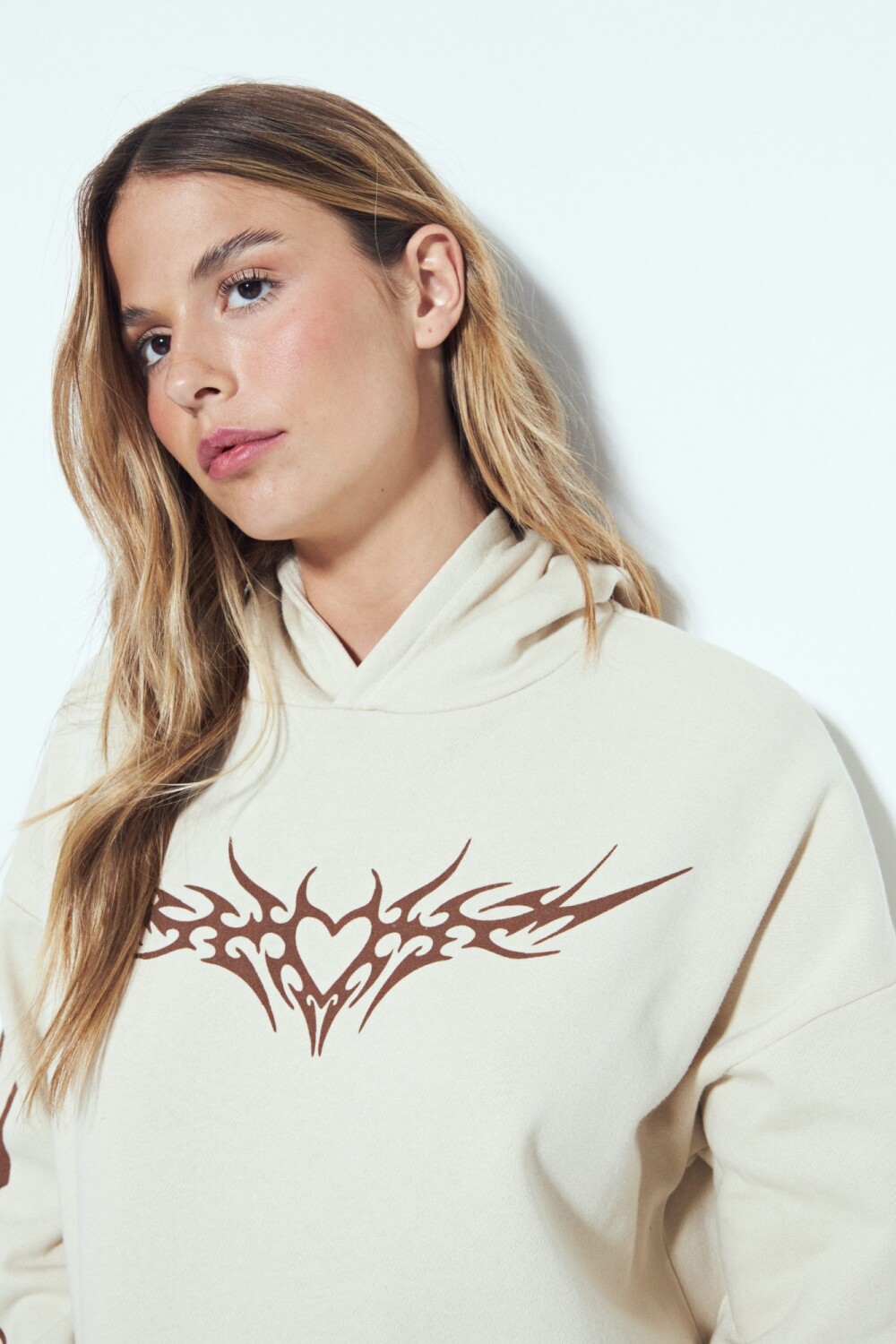 Buzo de silueta relajada con calce cómodo, diseñado para un look urbano con actitud. La estampa frontal aporta un impacto visual fuerte y contemporáneo, mientras que los detalles gráficos en mangas refuerzan su identidad y lo posicionan como una prenda protagonista dentro del outfit. La capucha integrada y las terminaciones clásicas lo convierten en una opción versátil y en tendencia, ideal para sumar carácter a estilismos casuales y street. Una pieza canchera, moderna y clave para elevar cualquier look diario.