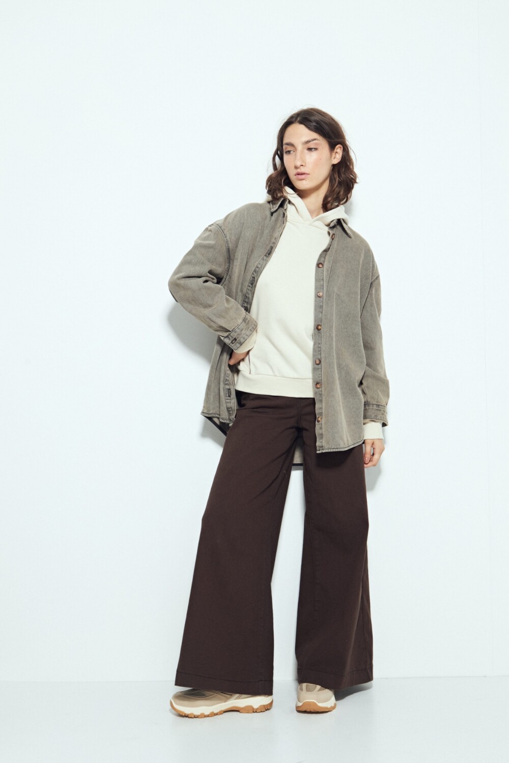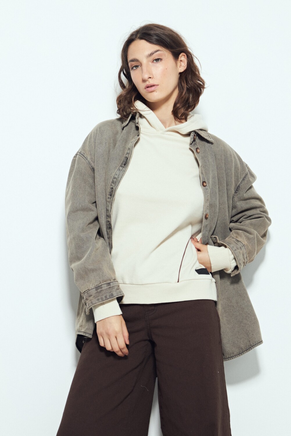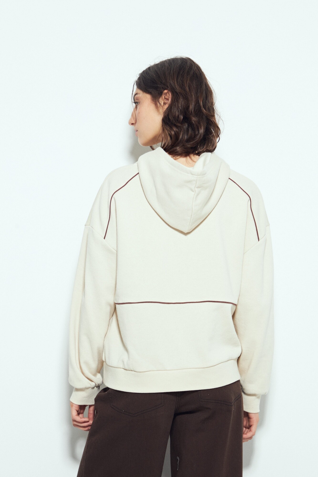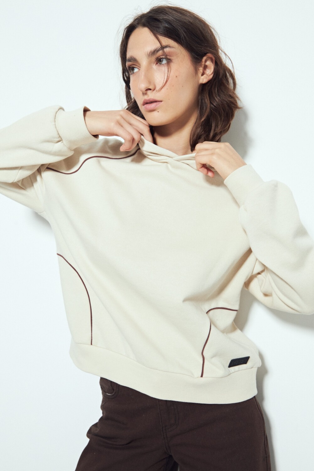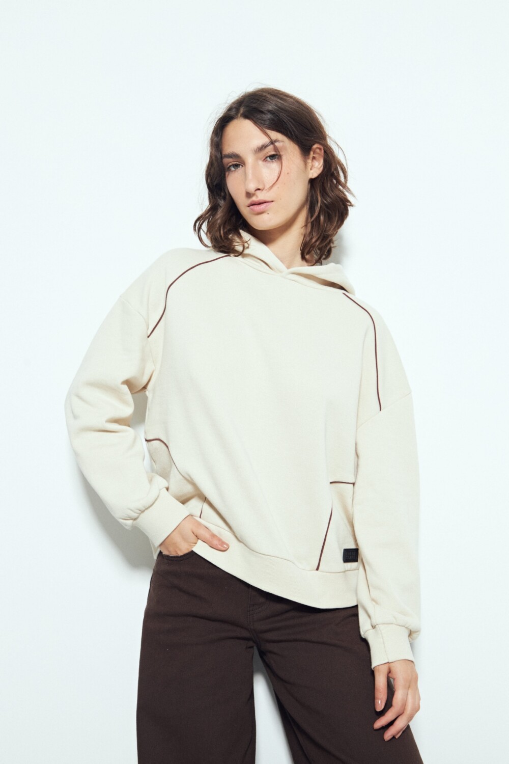 Buzo de silueta amplia con calce cómodo, pensado para un look urbano y actual. El diseño minimalista se potencia con detalles de líneas que recorren el frente y las mangas, aportando un guiño deportivo sutil y en tendencia. La capucha integrada suma funcionalidad y refuerza el estilo athleisure, ideal para usar tanto en looks relajados como combinados con prendas más estructuradas. Una prenda versátil, canchera y clave para elevar cualquier look diario.