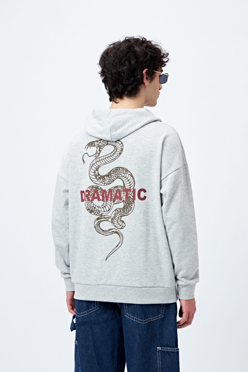 Un statement de estilo con impronta streetwear. Confeccionado en algodón con poliéster, este canguro de fit relajado incorpora capucha, bolsillo frontal y puños ajustados que suman confort. La estampa frontal con la palabra Dramatic aporta minimalismo, mientras que el gráfico en la espalda con tipografía bold y serpiente ilustrada le dan un aire fuerte y llamativo. Perfecto para looks urbanos con carácter, combinando con joggers, cargo o denim.