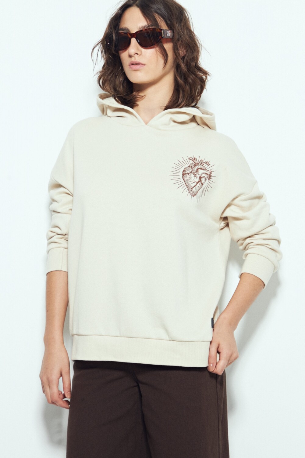 Buzo de silueta relajada con calce cómodo, pensado para un look urbano con impronta protagonista. La estampa gráfica suma carácter y personalidad, aportando un diferencial visual que eleva la prenda dentro de estilismos casuales y en tendencia. La capucha integrada refuerza el aire athleisure, mientras que las terminaciones prolijas aseguran un uso versátil, ideal tanto para llevar solo como combinado en outfits de capas. Una pieza canchera y actual, clave para elevar cualquier look diario.