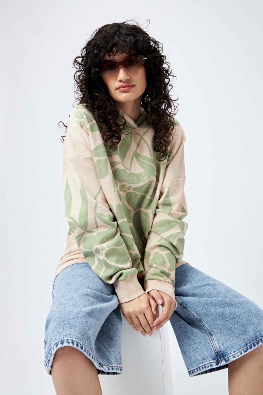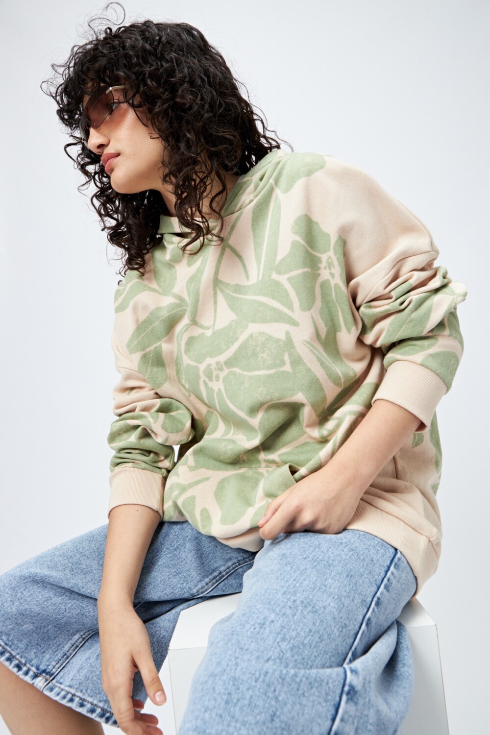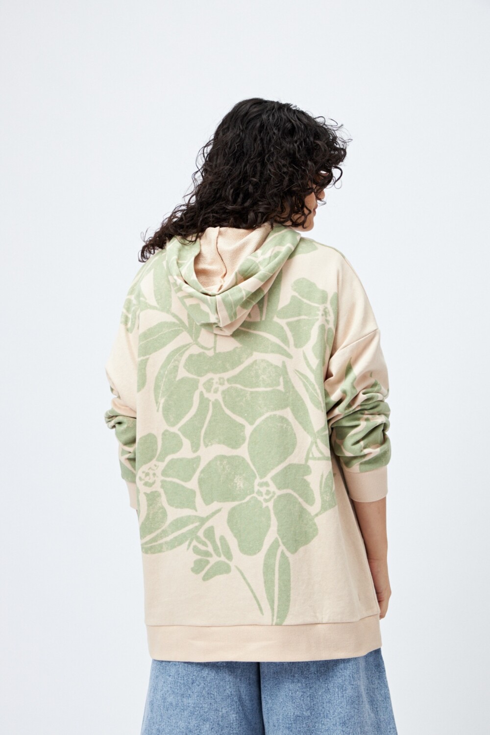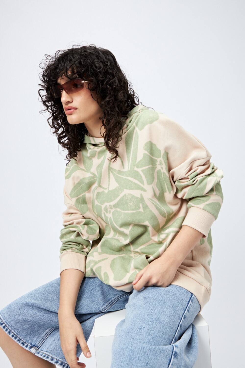 Canguro de corte relajado con capucha y bolsillo frontal, pensado para un look urbano y cómodo. Su estampa floral en toda la superficie lo convierte en un diseño distintivo y actual, ideal para quienes buscan sumar personalidad a sus outfits. Una prenda versátil que funciona tanto con denim como con joggers para un estilo streetwear.