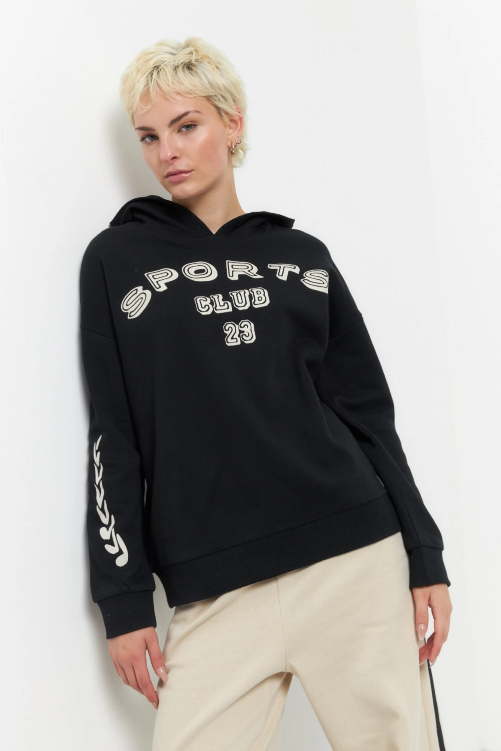 Canguro de algodón con estampa frontal, en las mangas y en la espalda, es de manga larga y cuenta con capucha.