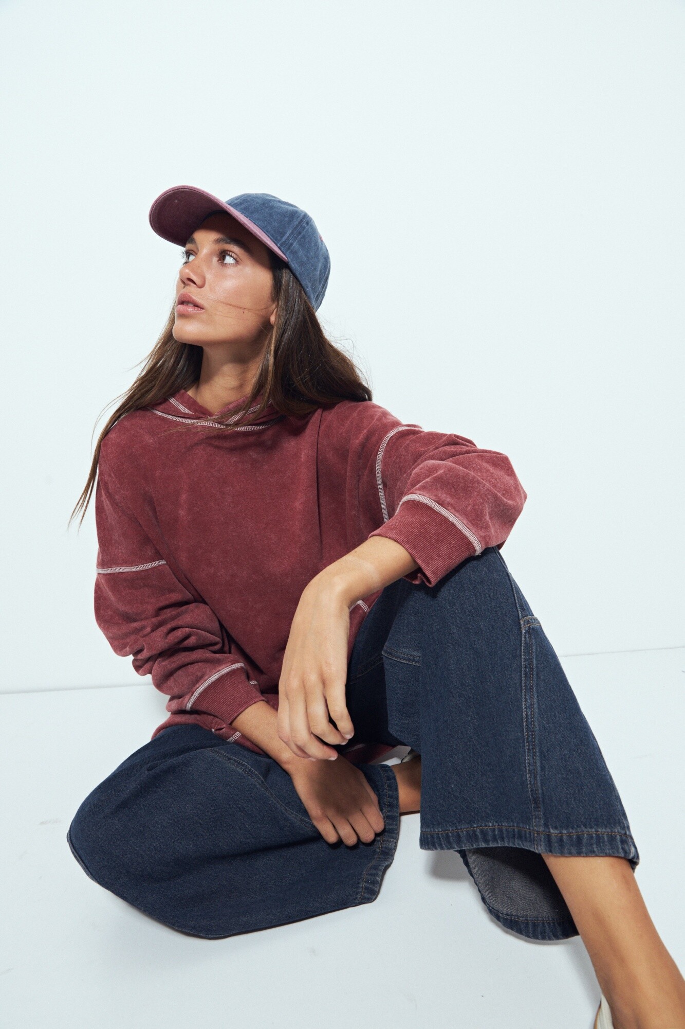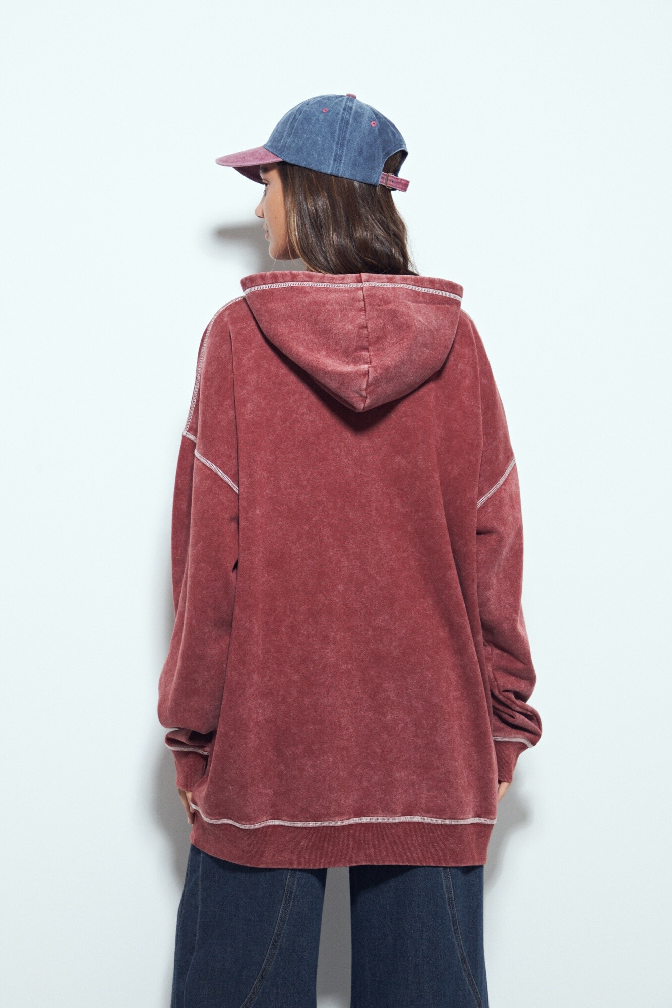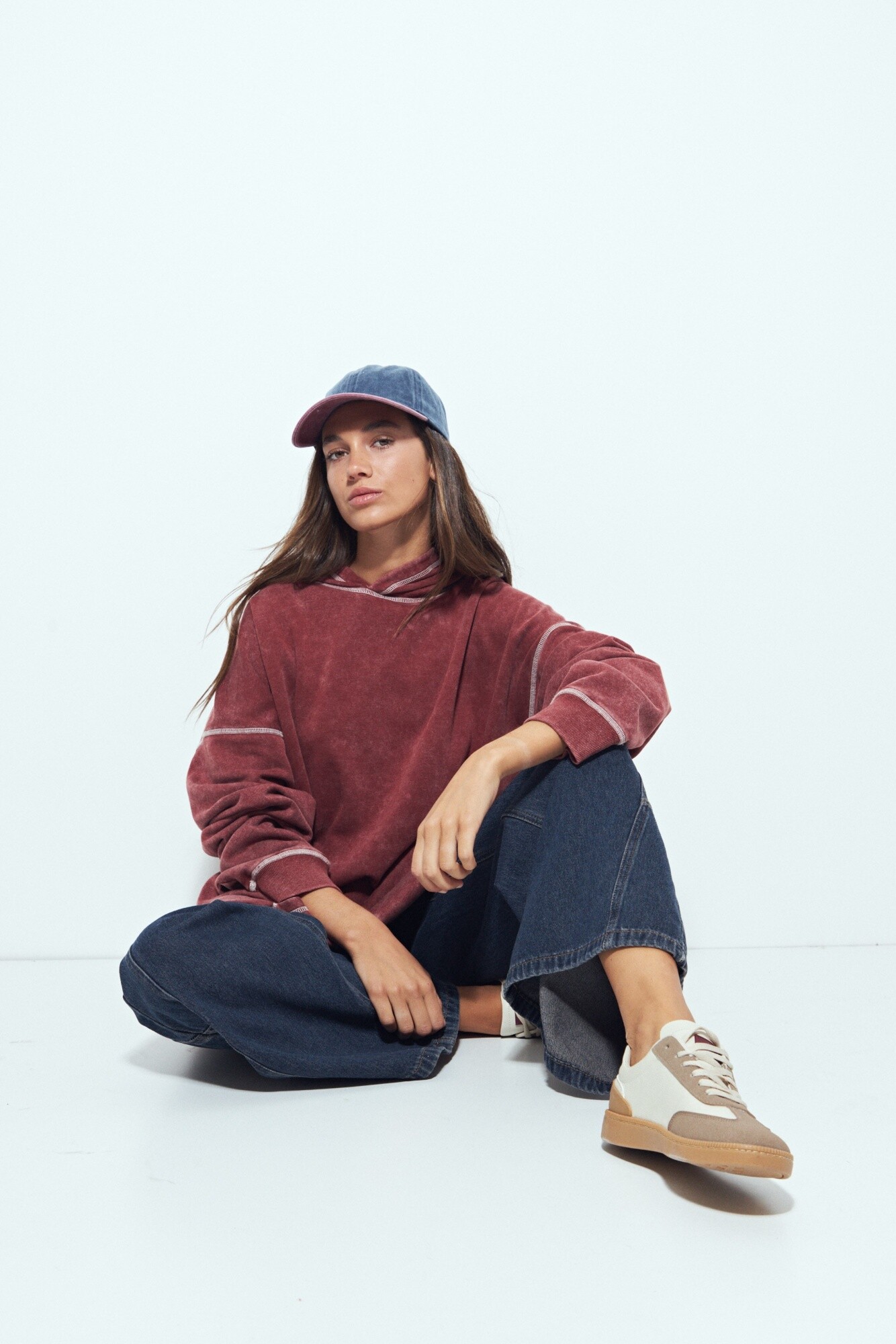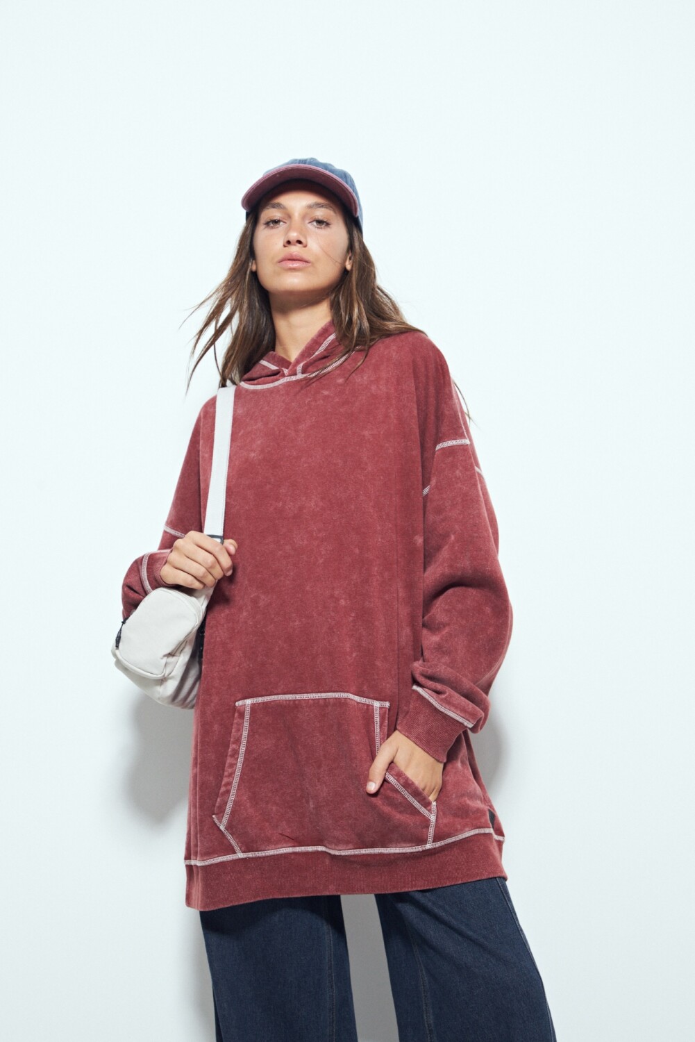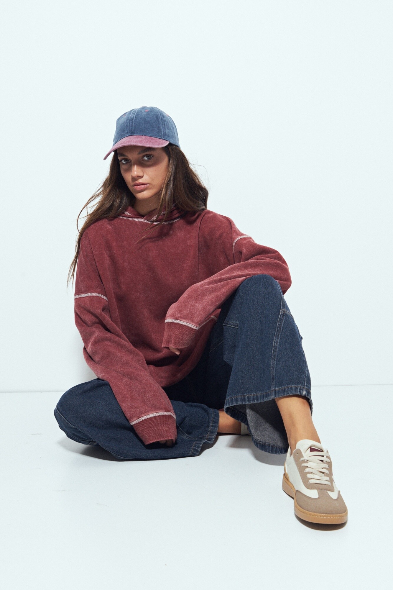 Buzo de calce relajado con estética urbana y un marcado efecto lavado que le aporta un look desgastado y actual. El diseño se destaca por las costuras a la vista en contraste, que suman carácter y un guiño utilitario, además del bolsillo frontal tipo canguro que refuerza su impronta casual. La capucha integrada completa una silueta cómoda y versátil, ideal para looks diarios con actitud. Una prenda clave para elevar cualquier look con un aire moderno y descontracturado.