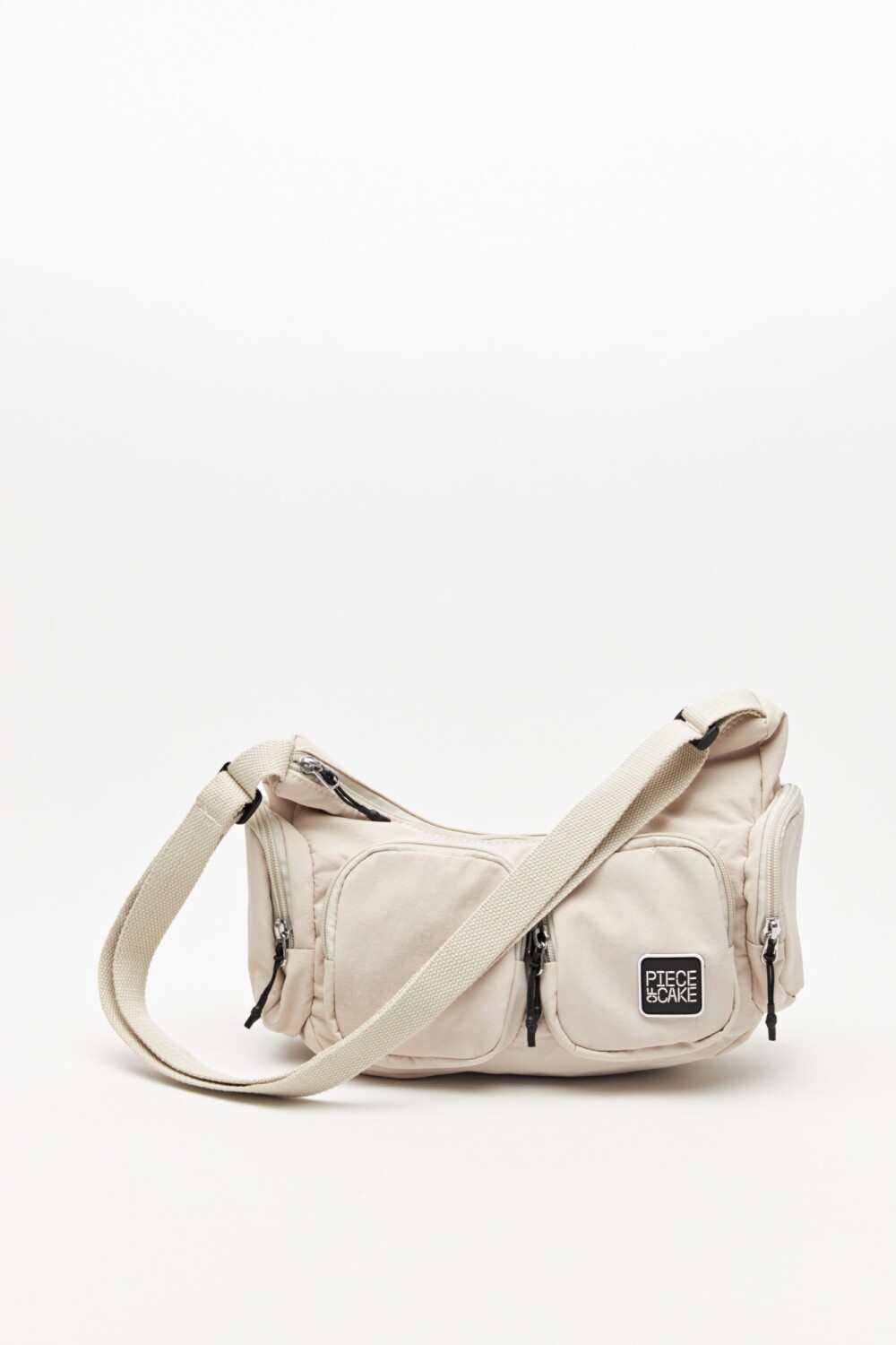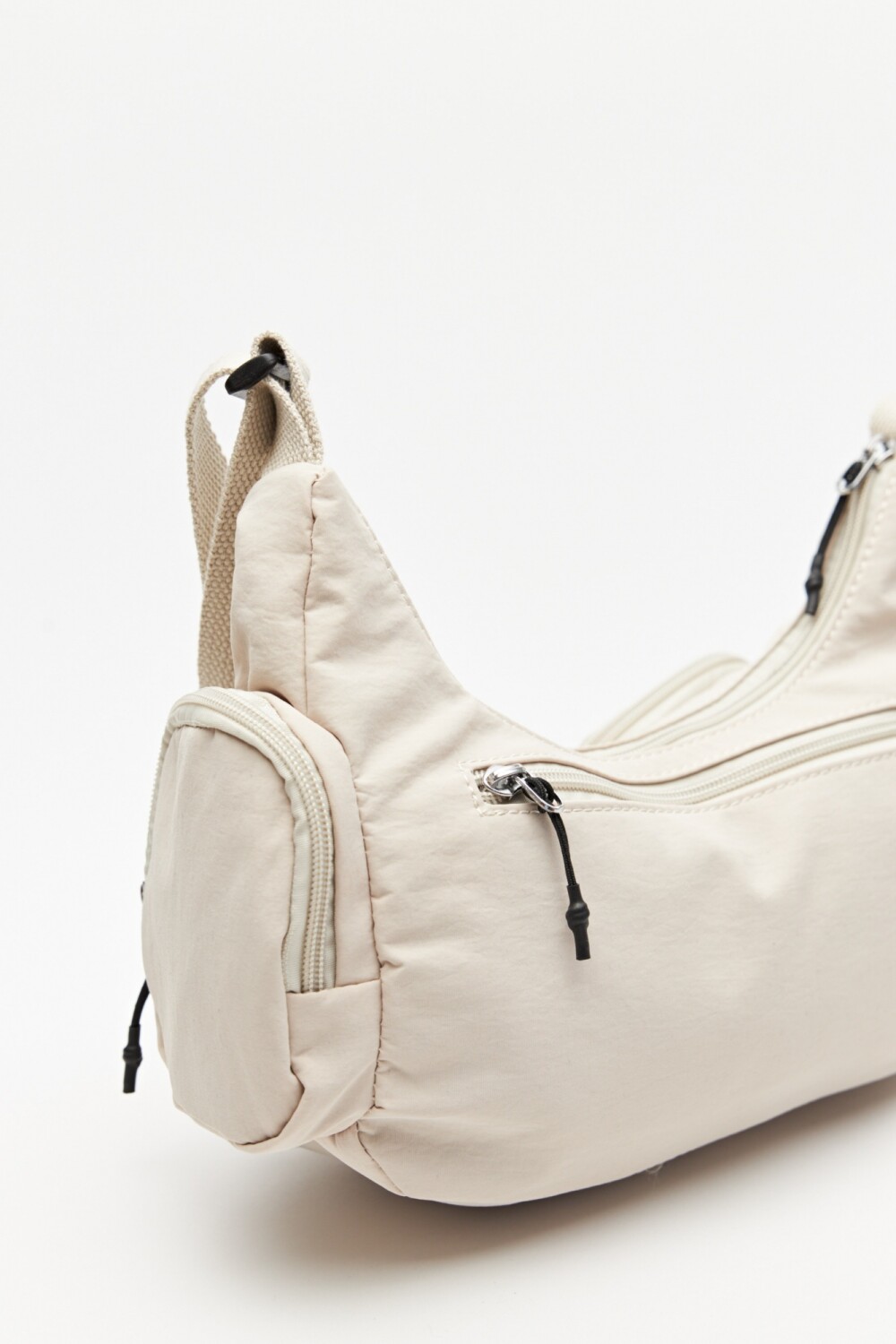 Cartera tipo shoulder de diseño utilitario confeccionada en material liviano y resistente, ideal para el uso diario. Su formato compacto y curvo se adapta cómodamente al cuerpo, mientras que la correa regulable permite llevarla al hombro o cruzada.