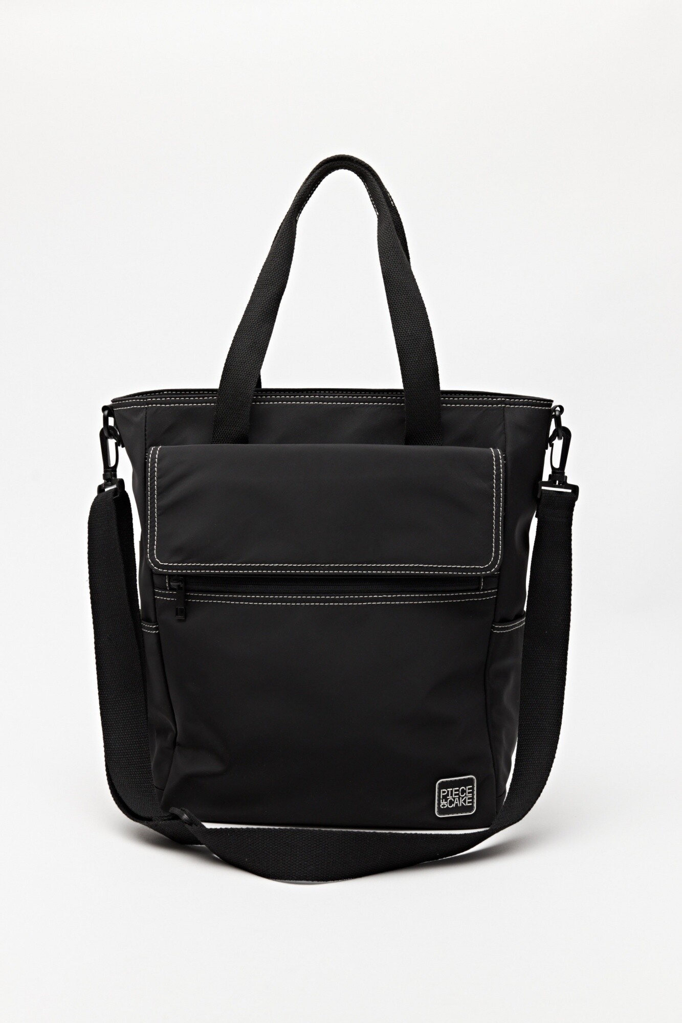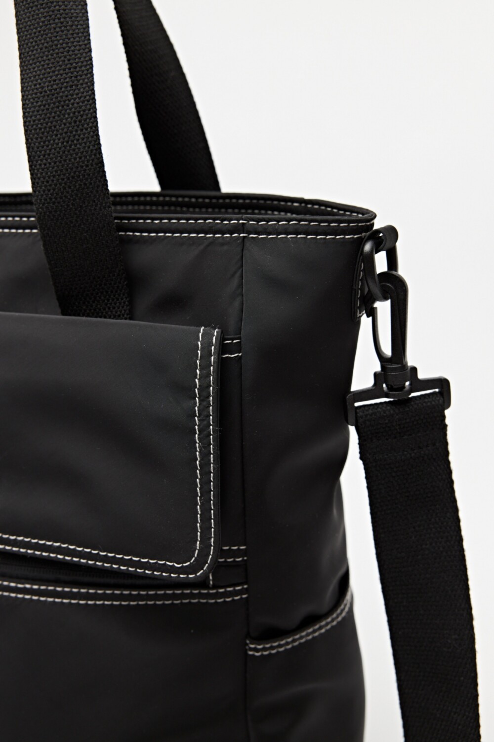 Cartera de diseño funcional confeccionada en material resistente y liviano, ideal para acompañar la rutina diaria con practicidad y estilo. Presenta doble asa superior y correa desmontable y regulable para llevar al hombro o cruzada, adaptándose a distintas necesidades. Su bolsillo frontal con solapa y cierre aporta organización extra, mientras que los bolsillos laterales suman capacidad sin perder estructura.