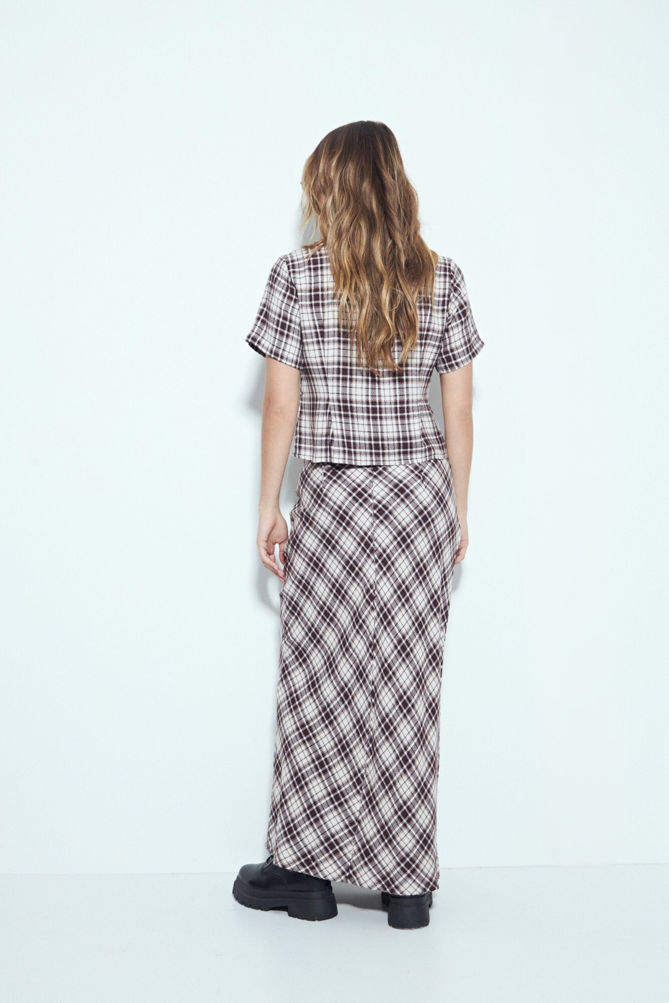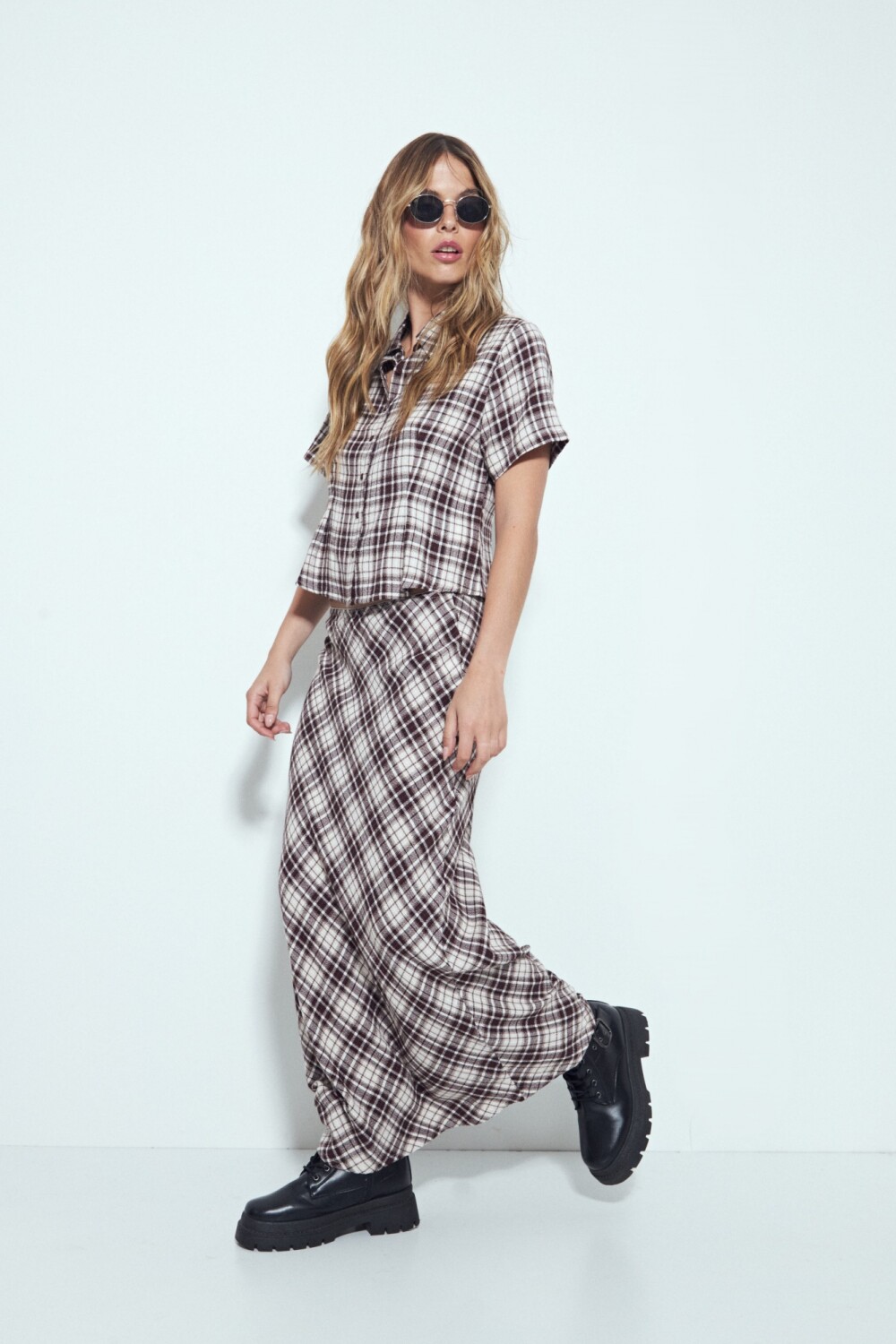 Falda larga a cuadros de silueta fluida y caída liviana, pensada para acompañar el movimiento con un calce cómodo y actual. Su diseño aporta un aire relajado pero pulido, ideal para armar conjuntos coordinados o combinar con básicos y lograr looks en tendencia. Una prenda versátil que se adapta al día a día y a propuestas más cancheras.
