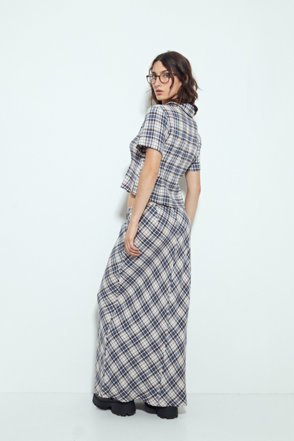 Falda larga a cuadros de silueta fluida y caída liviana, pensada para acompañar el movimiento con un calce cómodo y actual. Su diseño aporta un aire relajado pero pulido, ideal para armar conjuntos coordinados o combinar con básicos y lograr looks en tendencia. Una prenda versátil que se adapta al día a día y a propuestas más cancheras.