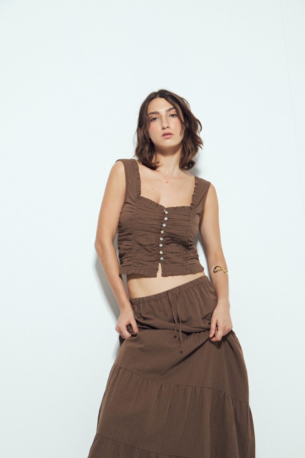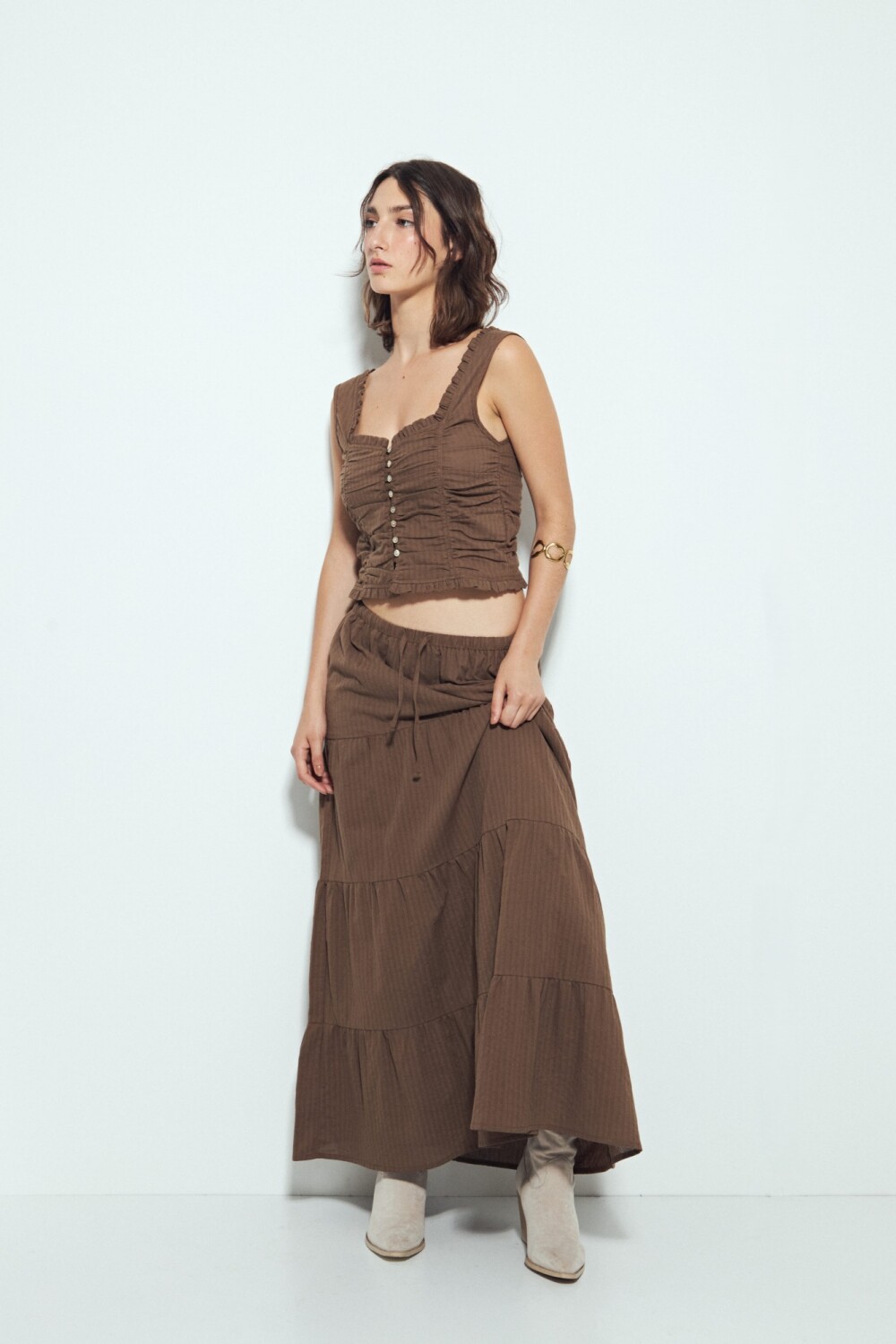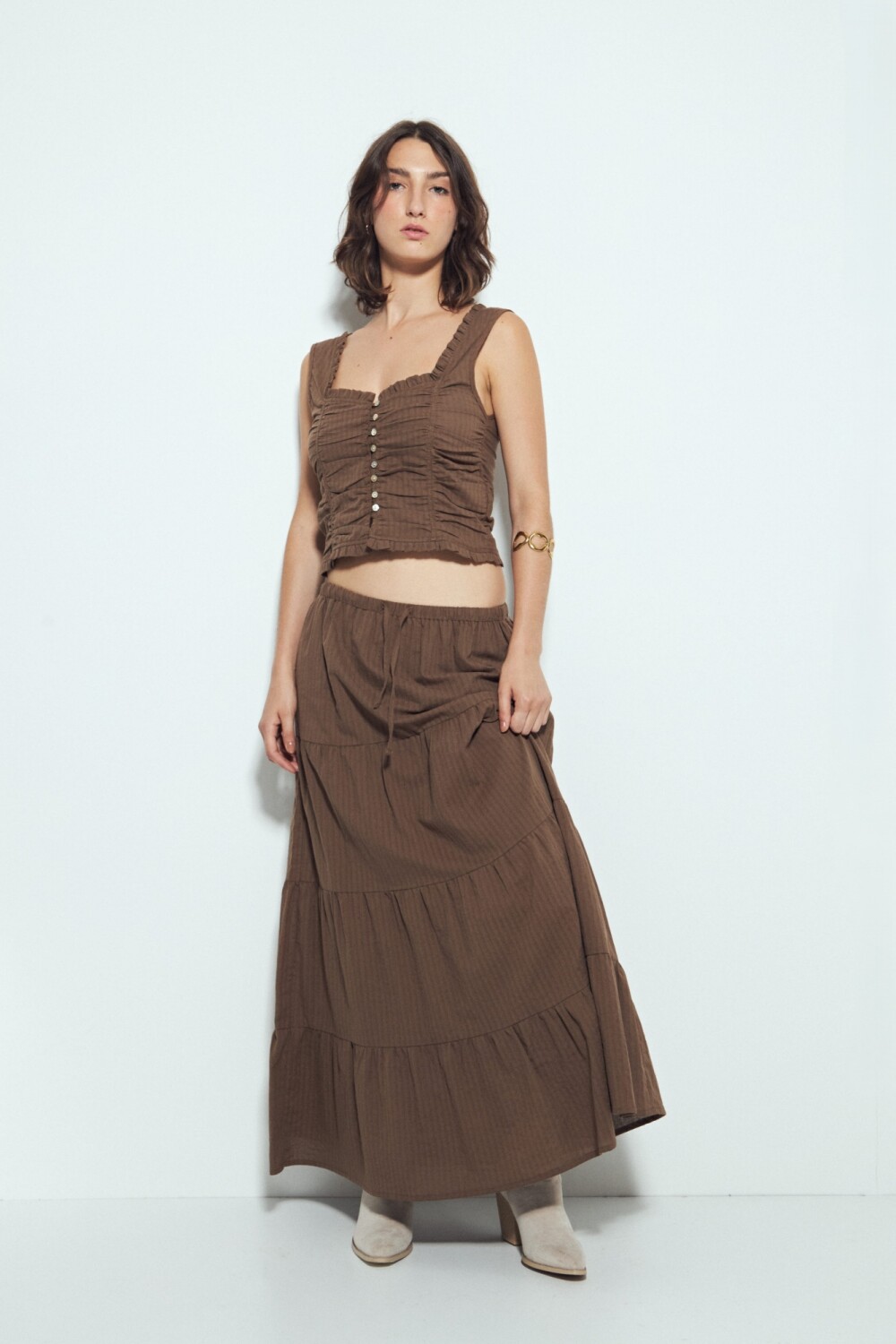 Diseño de silueta fluida y largo maxi que aporta movimiento y un look relajado con impronta boho. Presenta cintura elástica con ajuste cómodo y estructura en paños que suma volumen y caída natural, logrando una prenda versátil para distintos estilismos. Ideal para combinar con tops o blusas livianas, es una pieza en tendencia que acompaña el ritmo del día a día con estilo. Clave para elevar cualquier look sin perder comodidad.