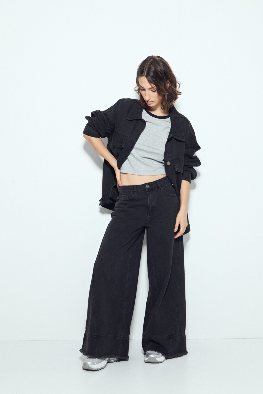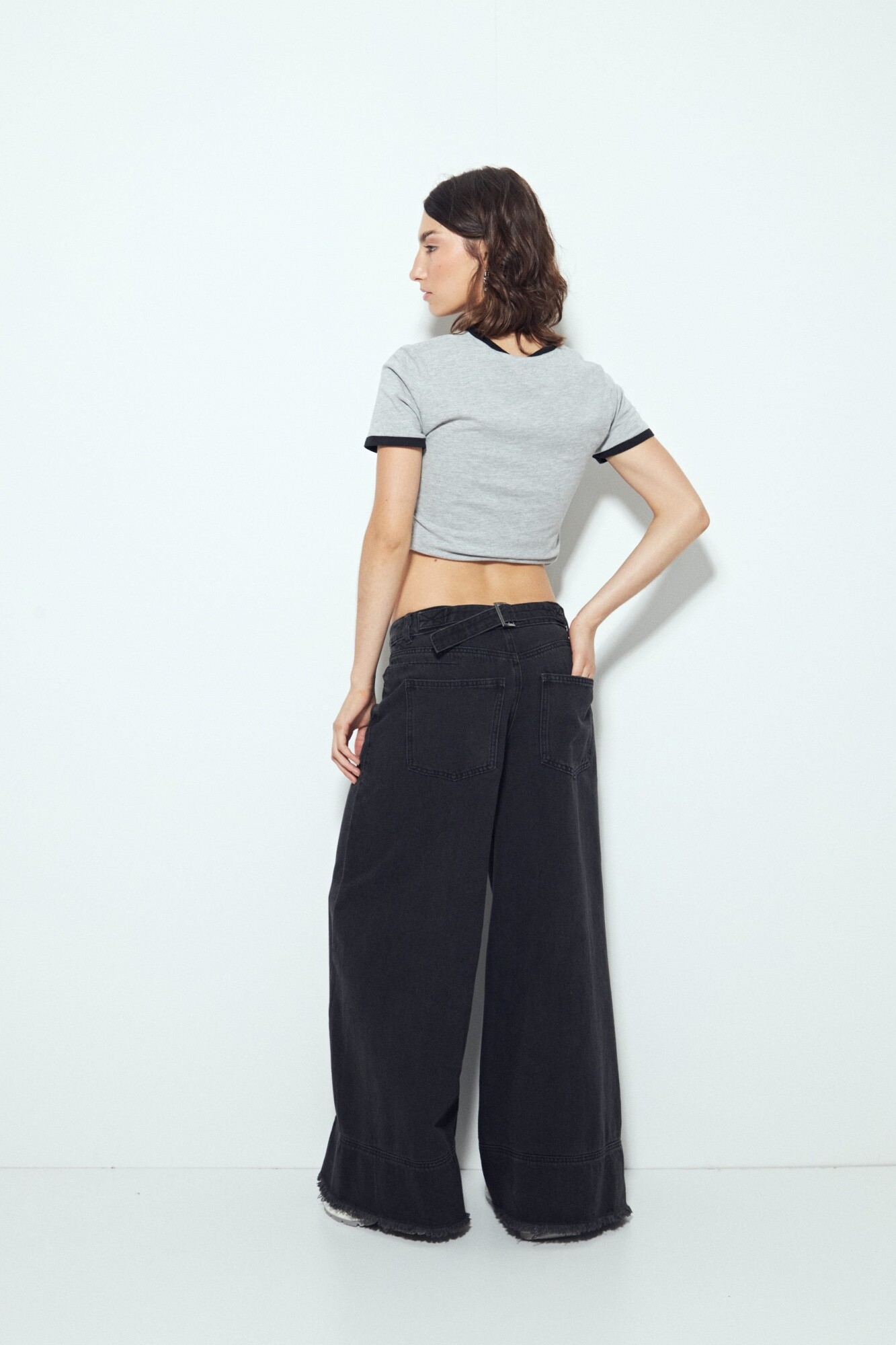 Jean de tiro bajo, de silueta relajada con actitud noventera que vuelve a ser protagonista. Su calce holgado acompaña el cuerpo con comodidad, aportando un look urbano y actual. Se destaca por el deflecado en el bajo, un detalle que aporta un acabado descontracturado y refuerza su impronta urbana.