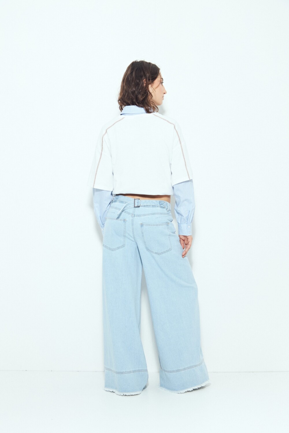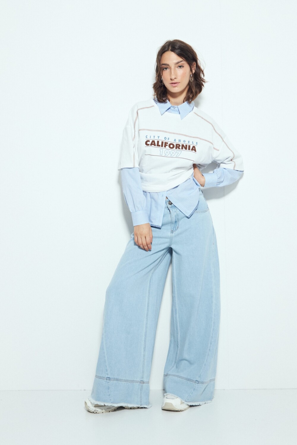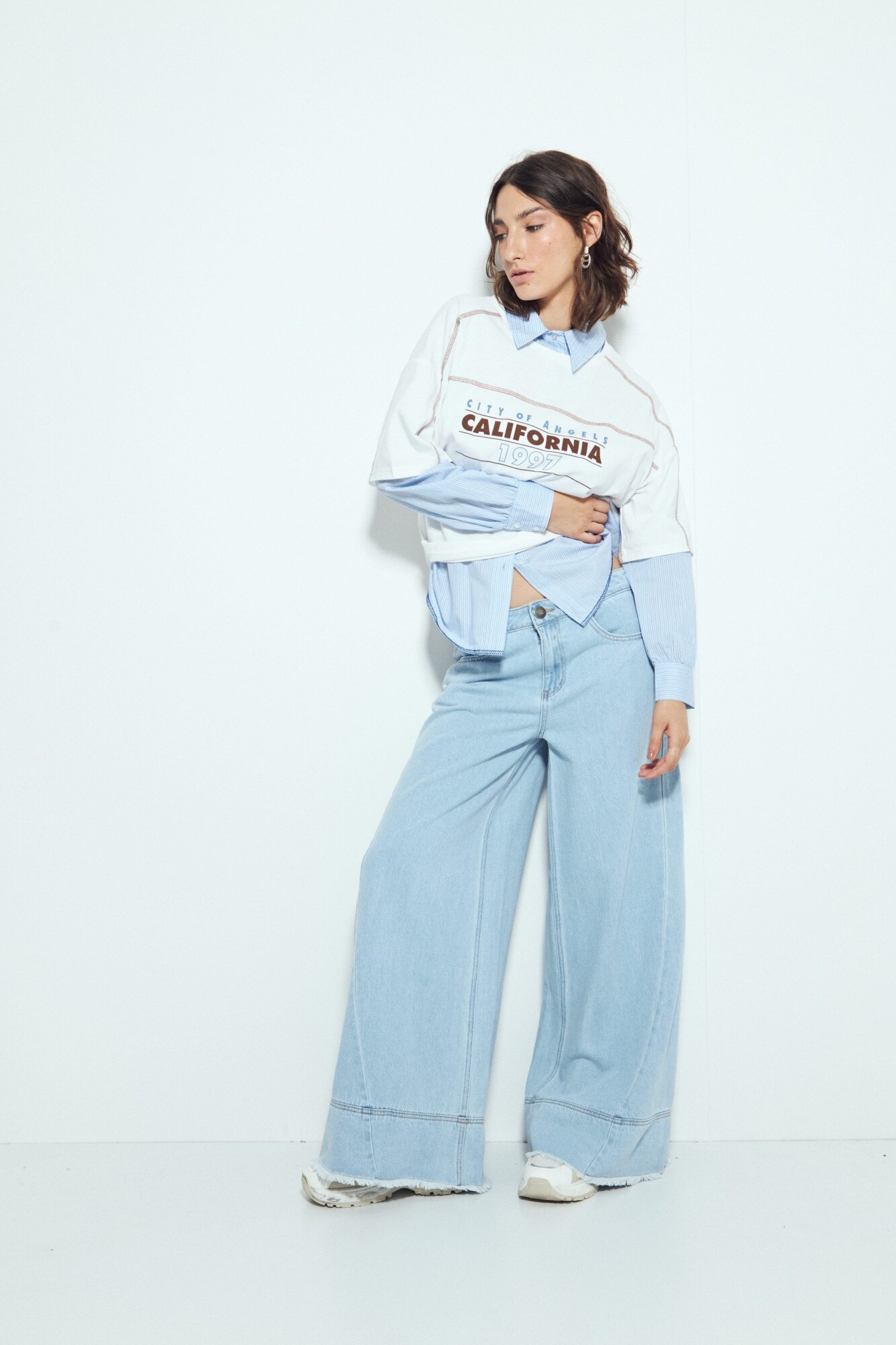 Jean de tiro bajo, de silueta relajada con actitud noventera que vuelve a ser protagonista. Su calce holgado acompaña el cuerpo con comodidad, aportando un look urbano y actual. Se destaca por el deflecado en el bajo, un detalle que aporta un acabado descontracturado y refuerza su impronta urbana.