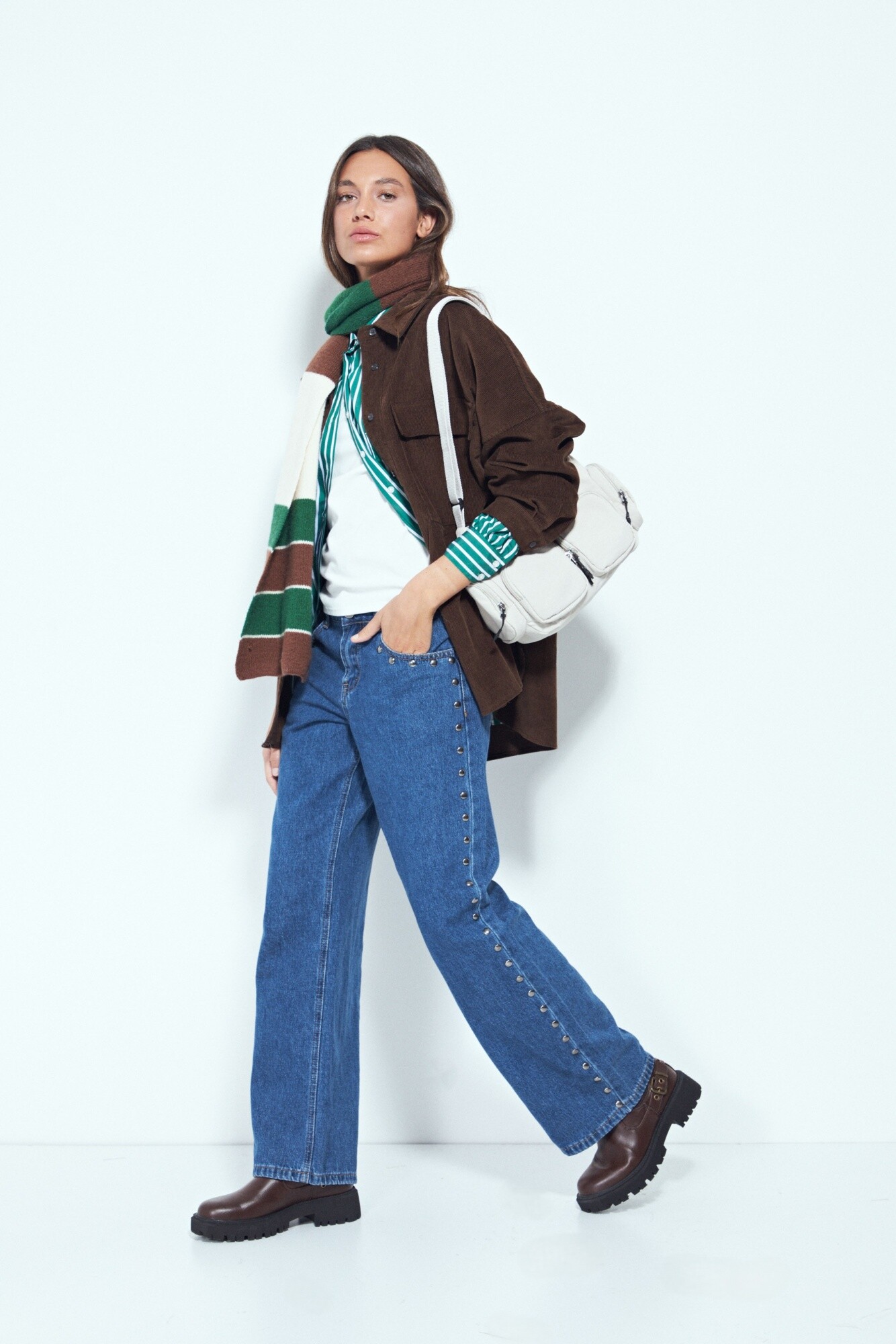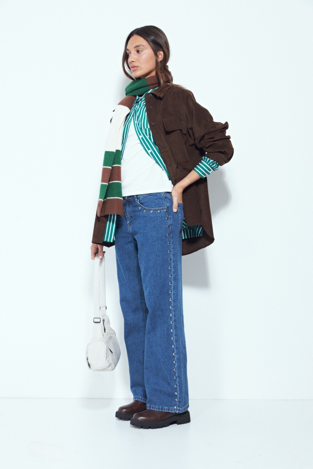 Jean de calce recto con detalles metálicos laterales que aportan un toque distintivo al diseño. La silueta relajada brinda comodidad para el uso diario, mientras que el denim estructurado mantiene la forma y eleva el look. Ideal para combinar con básicos o camisas y lograr un outfit canchero y actual.