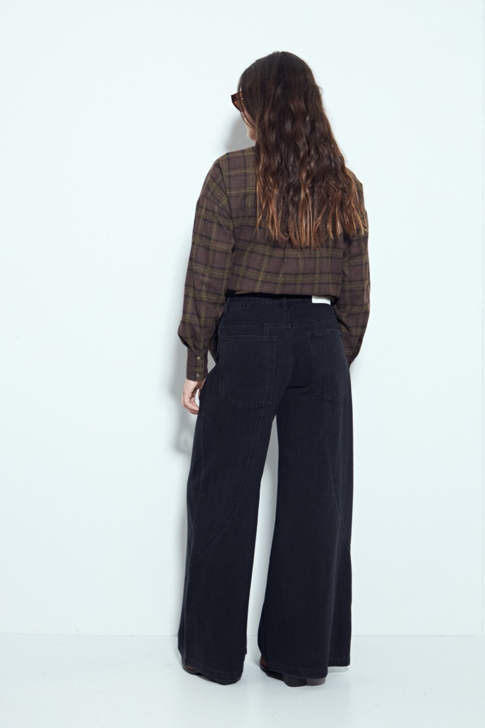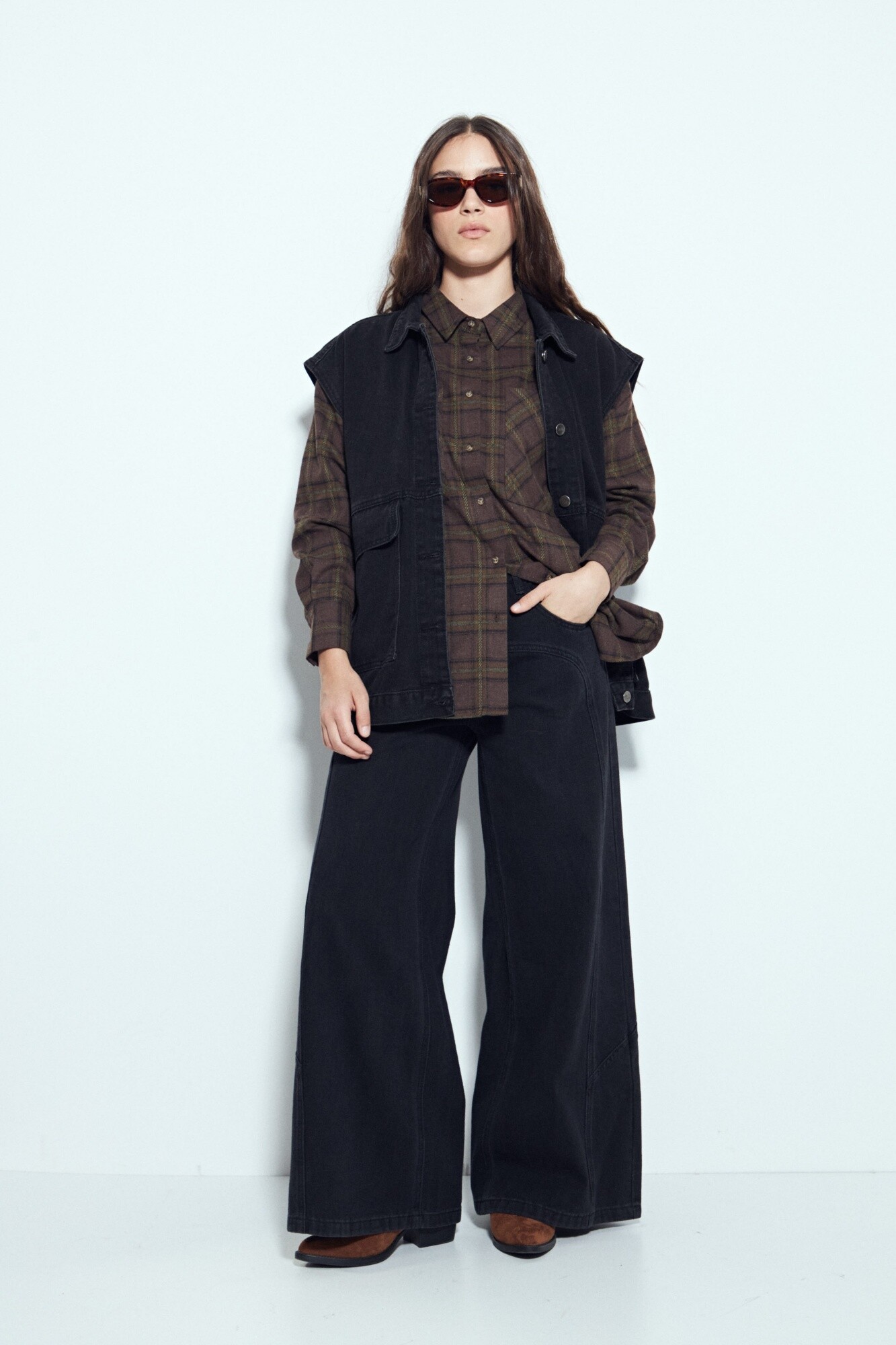 Jean wide leg de tiro medio,una silueta amplia y relajada que aporta un look actual y con actitud. El diseño de pierna ancha genera un calce fluido y favorecedor, ideal para estilismos urbanos y desenfadados. Su estructura acompaña el movimiento sin perder presencia, convirtiéndolo en un básico en tendencia que funciona tanto con tejidos livianos como con prendas más estructuradas. Un infaltable versátil, clave para elevar cualquier look.