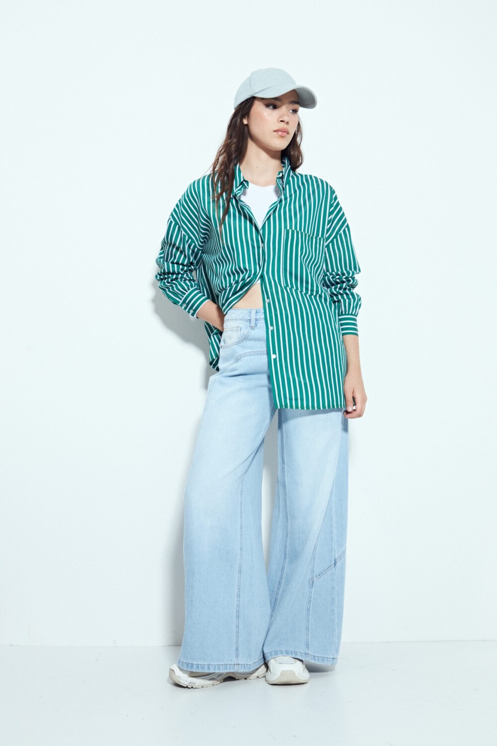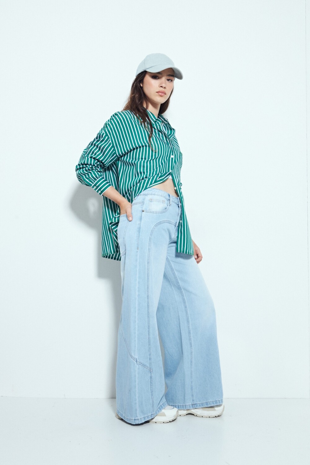 Jean wide leg de tiro medio,una silueta amplia y relajada que aporta un look actual y con actitud. El diseño de pierna ancha genera un calce fluido y favorecedor, ideal para estilismos urbanos y desenfadados. Su estructura acompaña el movimiento sin perder presencia, convirtiéndolo en un básico en tendencia que funciona tanto con tejidos livianos como con prendas más estructuradas. Un infaltable versátil, clave para elevar cualquier look.