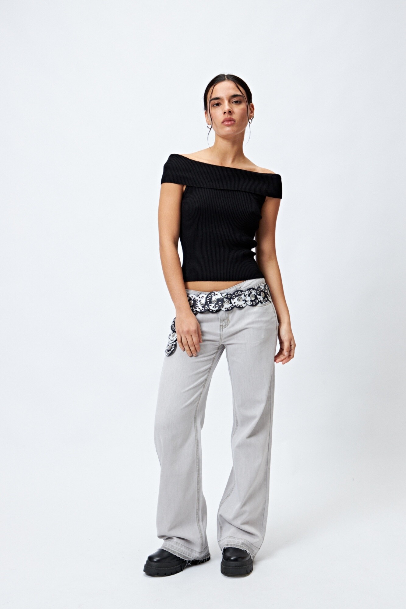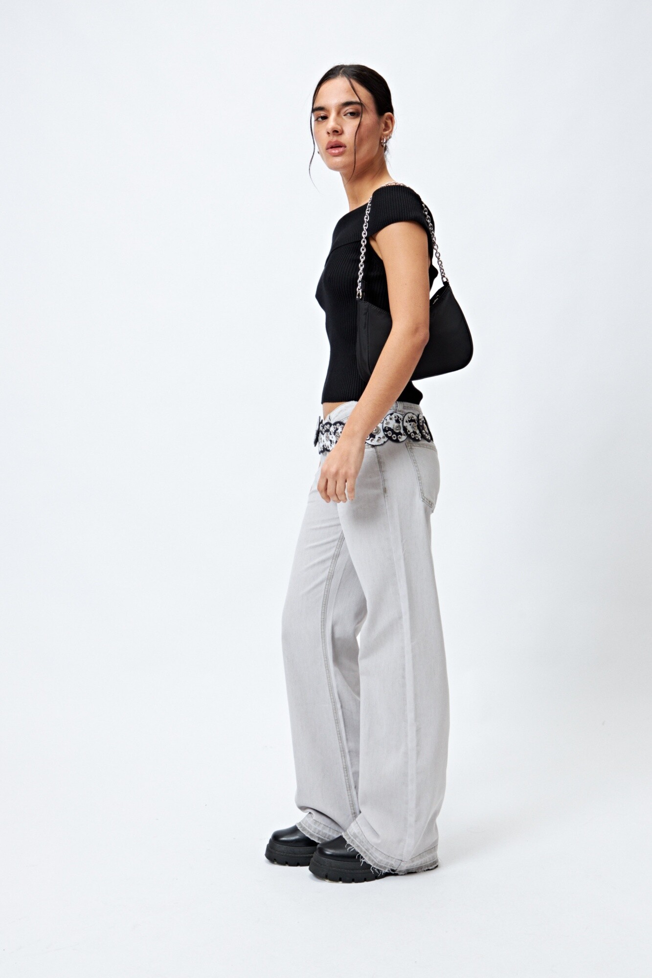 Jean recto de tiro bajo, 100% algodón, cuenta con deflecado en las terminaciones y degradé de color.