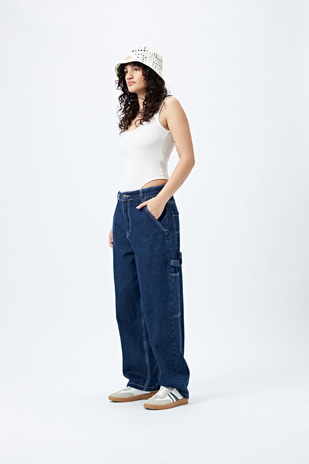 Jean baggy carpenter de tiro medio y calce amplio, un modelo trendy y funcional que suma actitud a cualquier look. Con bolsillos utilitarios y presillas laterales típicas del estilo carpenter, es una prenda sin género que se adapta a múltiples estilos, desde el casual al urbano más canchero.