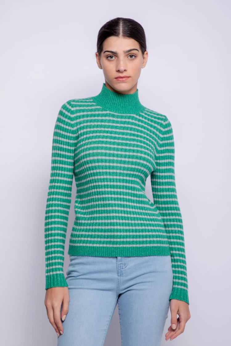 Agregale color a tus prendas con la polera Eva! Con un diseño a rayas, de manga larga y cuello alto.