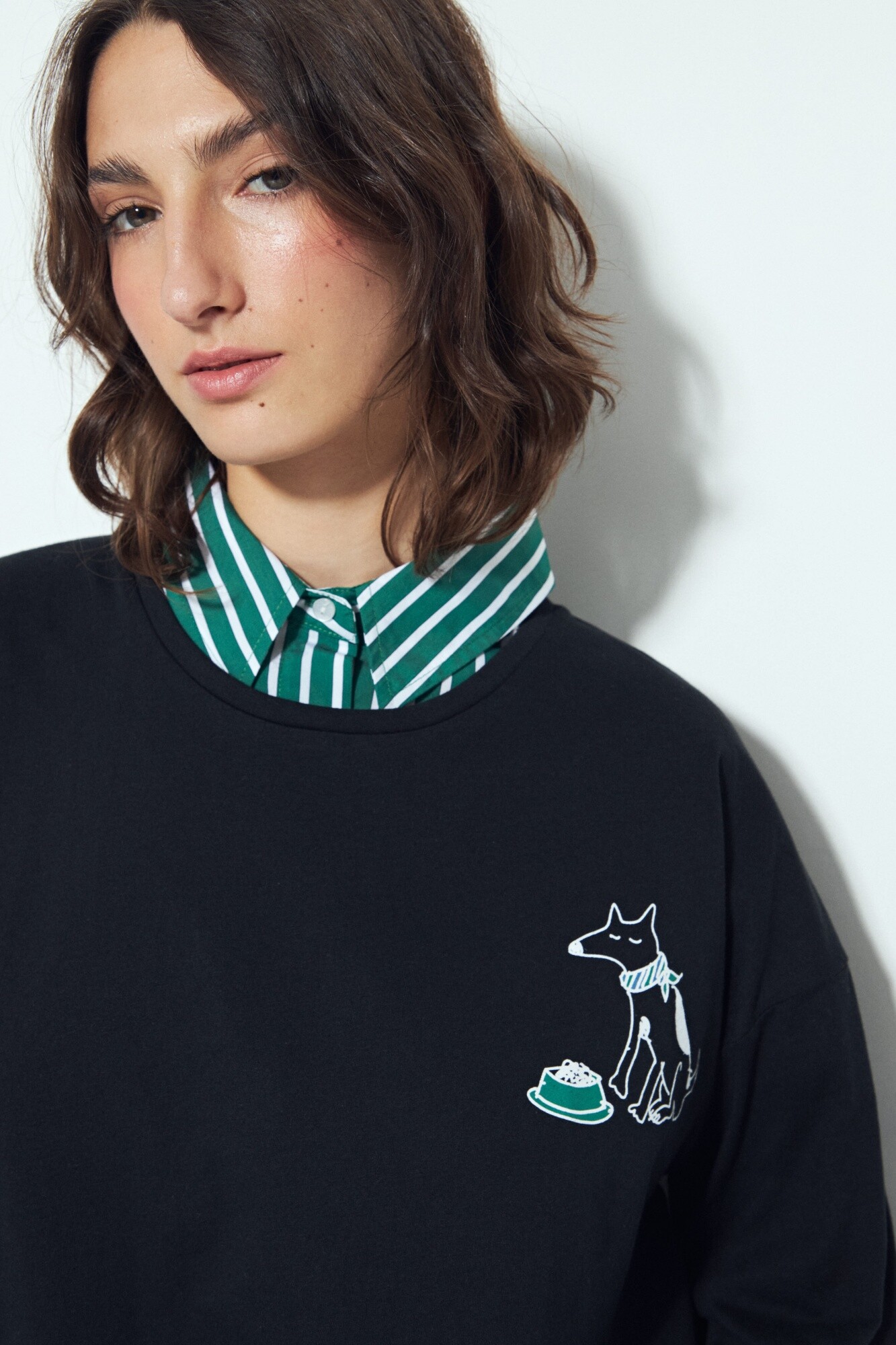 Remera de manga corta de calce relajado, con cuello a la base y silueta amplia que aporta un look descontracturado y actual. El diseño combina un estampado frontal pequeño con una estampa protagonista en la espalda, logrando un equilibrio entre detalle y statement gráfico. Una prenda cómoda, versátil y en tendencia, clave para elevar cualquier look urbano o casual.