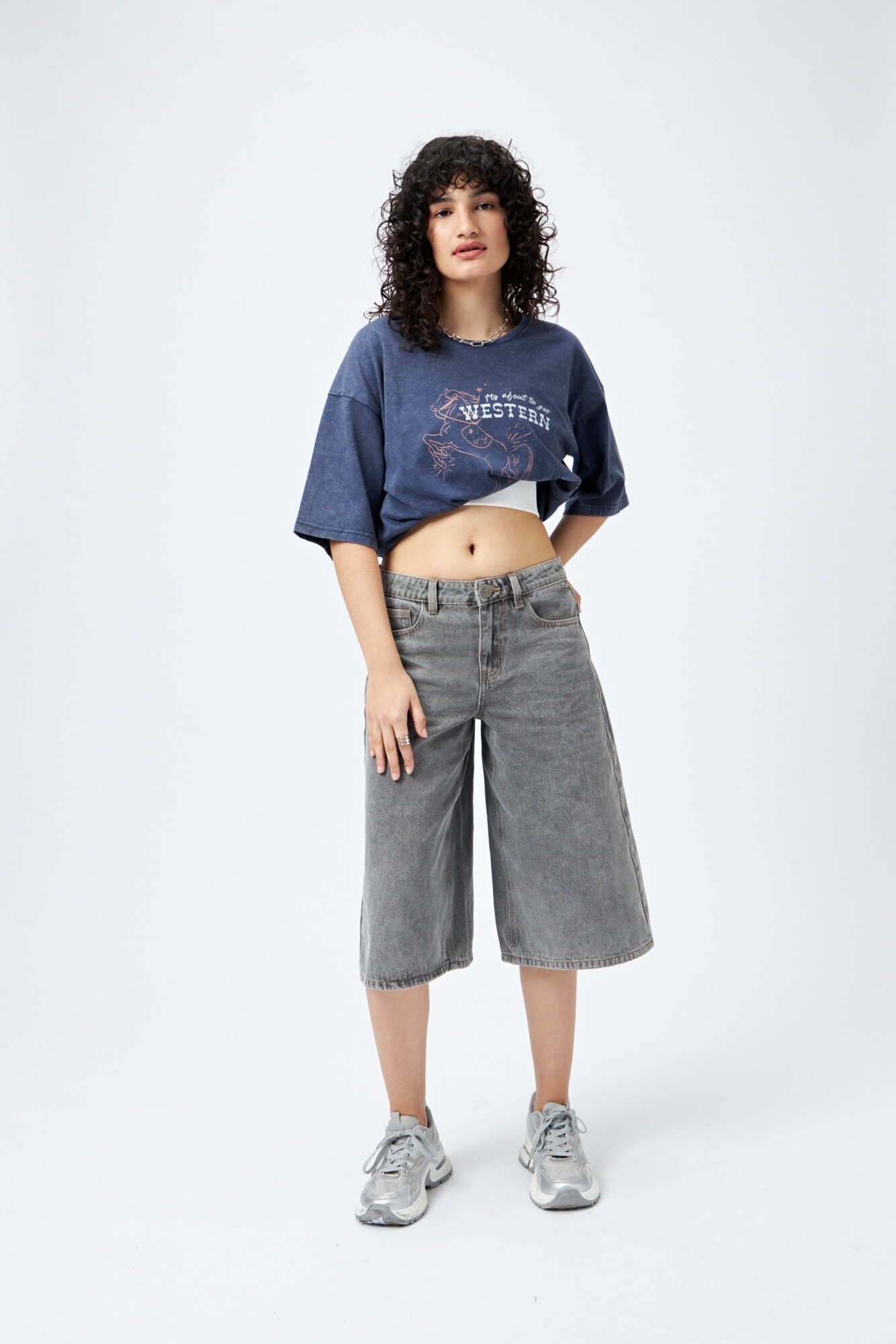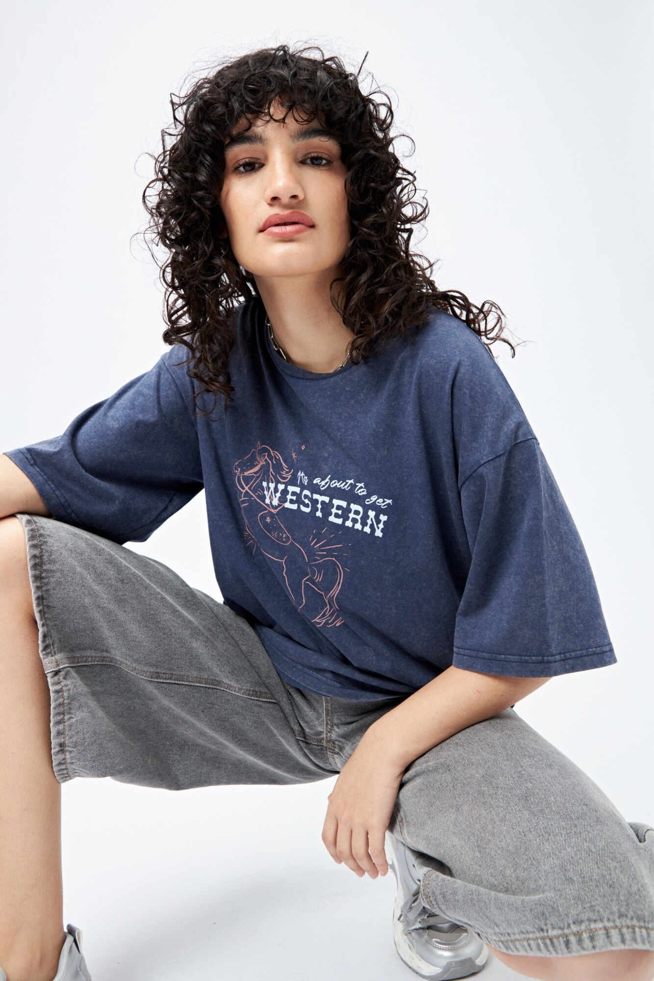 Remerón de manga corta confeccionado en tejido suave y liviano con efecto lavado. Su silueta amplia y relajada lo convierte en un must para un look con actitud. La estampa frontal con guiño western suma personalidad y tendencia, ideal para combinar con denim o pantalones anchos.