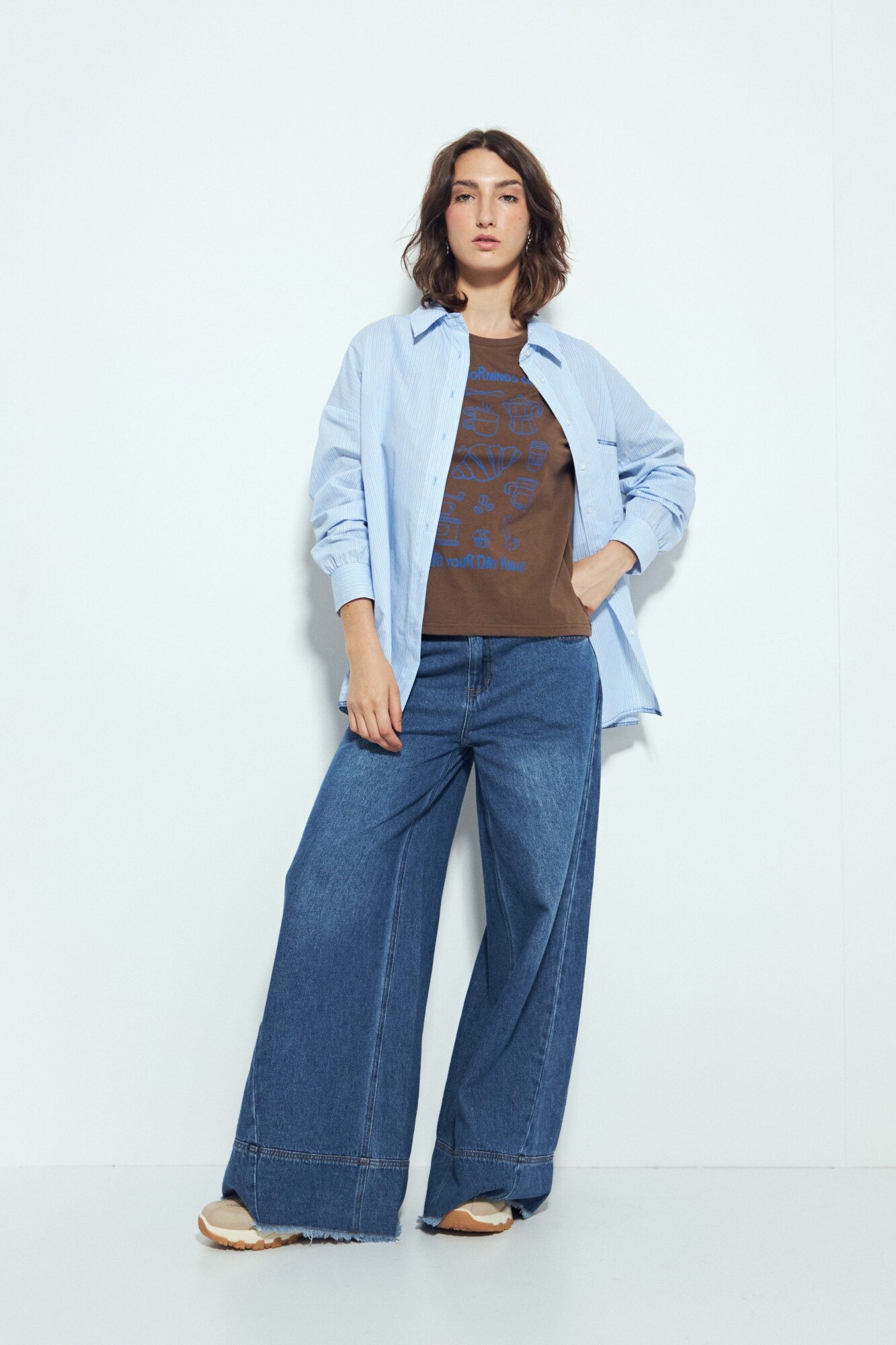 Remera estampada de manga corta con diseño gráfico al frente que aporta un guiño relajado y actual. El print suma personalidad y hace de esta prenda una opción ideal para looks urbanos y descontracturados, fácil de combinar y clave para elevar cualquier look. La camisa que se ve debajo forma parte del estilismo y no está incluida en la prenda.
