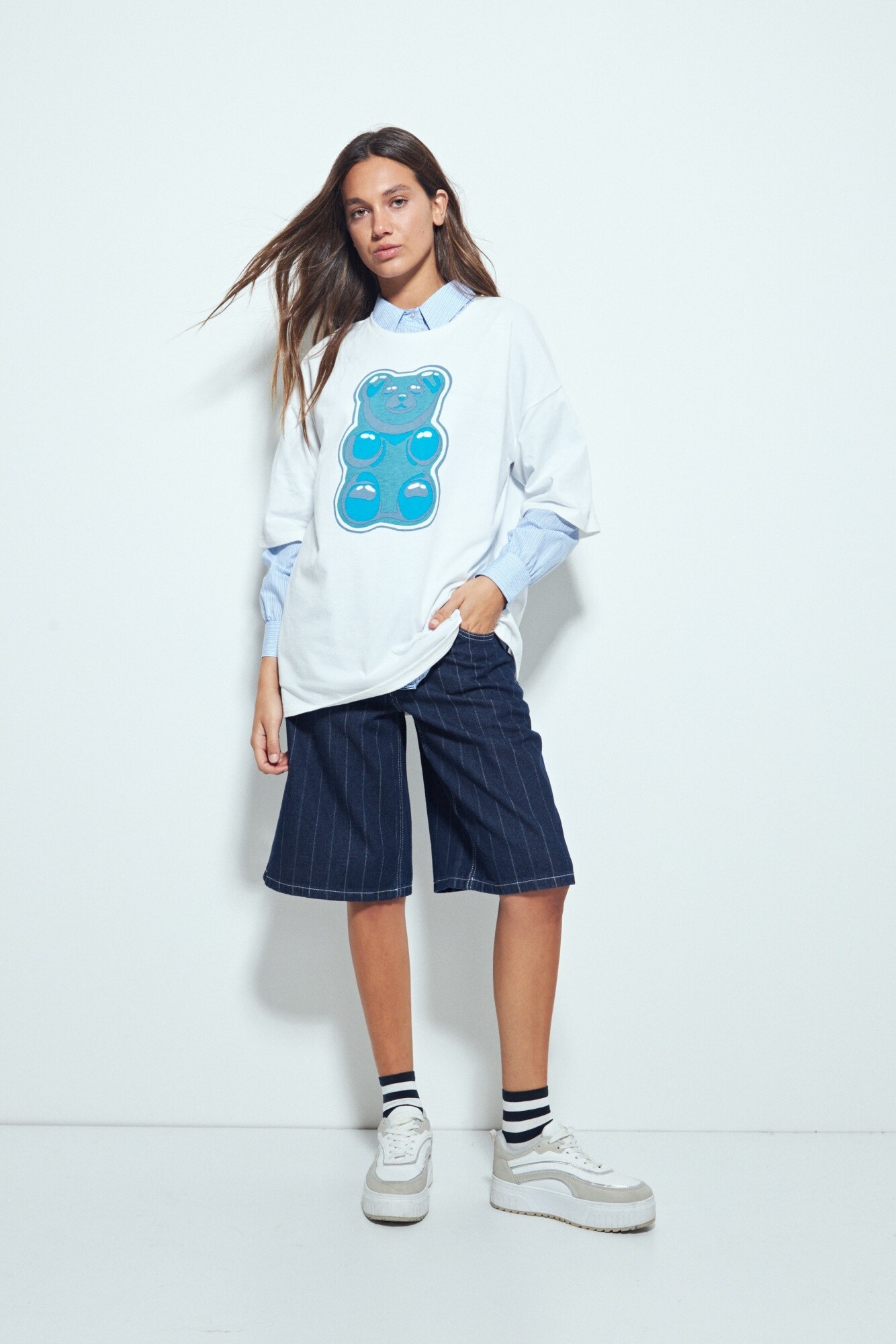 Remerón de manga corta de la línea WE - UNISEX, de calce amplio y estética urbana, trabajado con proceso washed/dye que le aporta un efecto desgastado sutil y personalidad propia. Su silueta relajada lo convierte en una pieza cómoda y versátil, ideal para usar solo o superpuesto, reforzando un look descontracturado y en tendencia. Presenta estampa gráfica de gummy bear que suma identidad al diseño y aporta un guiño lúdico sin perder carácter.