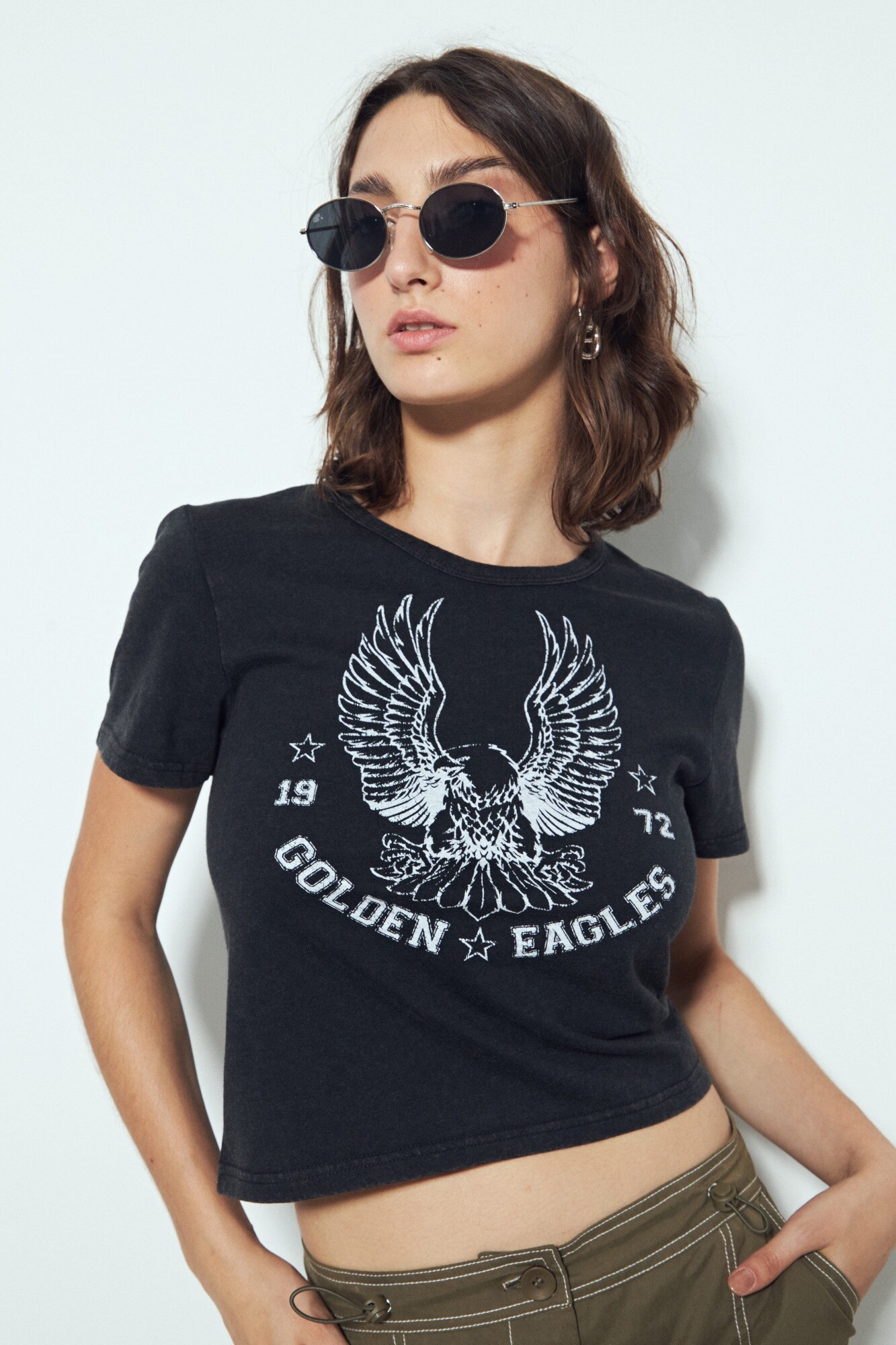 Remera cropped de manga corta con escote a la base y estampa frontal de inspiración vintage. Su silueta corta y de calce ajustado retoma referencias clásicas del rock y la gráfica americana de los años 70, reinterpretadas en clave actual para un look urbano y canchero. El diseño aporta presencia sin perder versatilidad, ideal para combinar con prendas de tiro alto o usar como pieza protagonista en outfits más relajados.