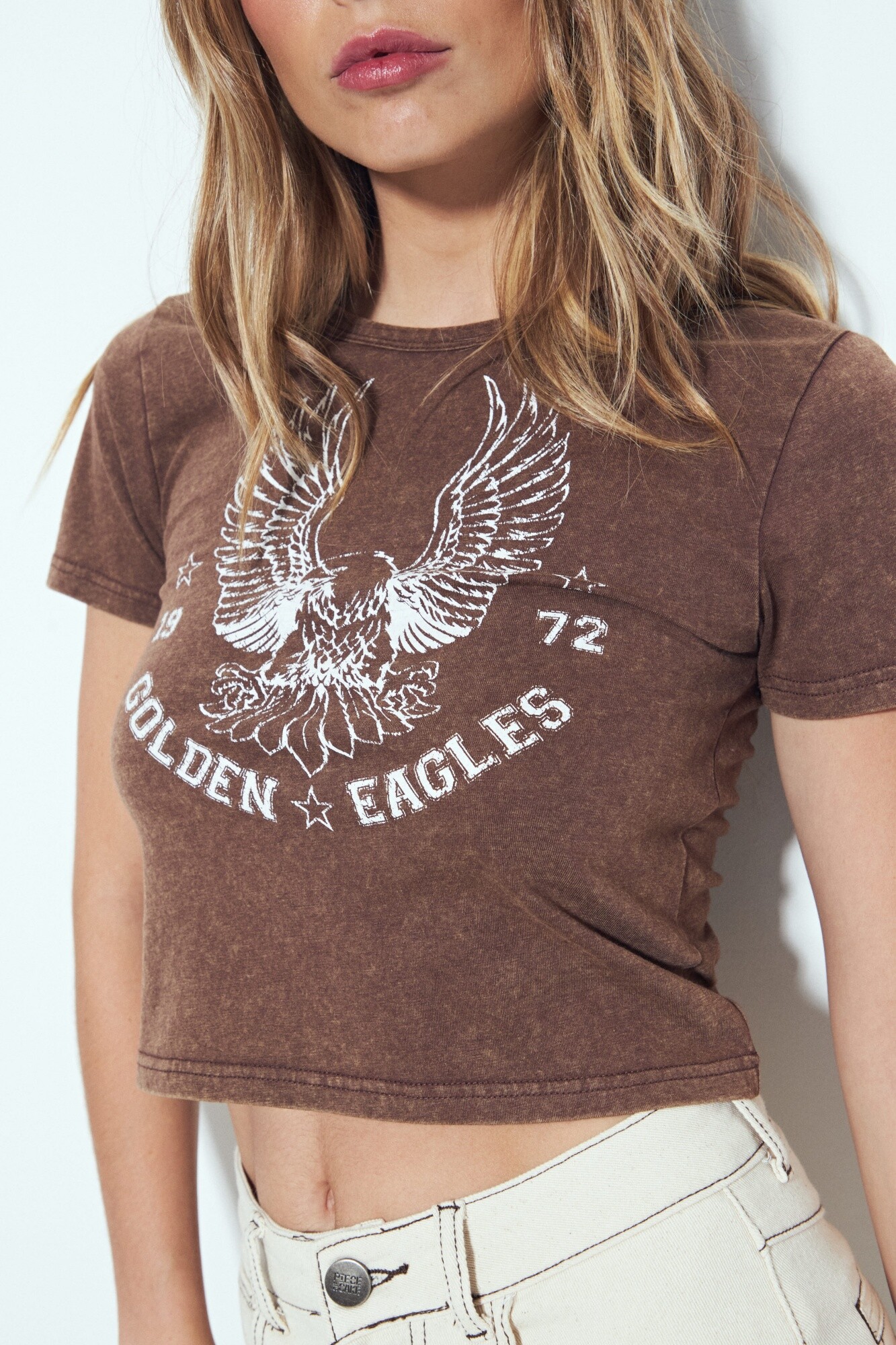 Remera cropped de manga corta con escote a la base y estampa frontal de inspiración vintage. Su silueta corta y de calce ajustado retoma referencias clásicas del rock y la gráfica americana de los años 70, reinterpretadas en clave actual para un look urbano y canchero. El diseño aporta presencia sin perder versatilidad, ideal para combinar con prendas de tiro alto o usar como pieza protagonista en outfits más relajados.
