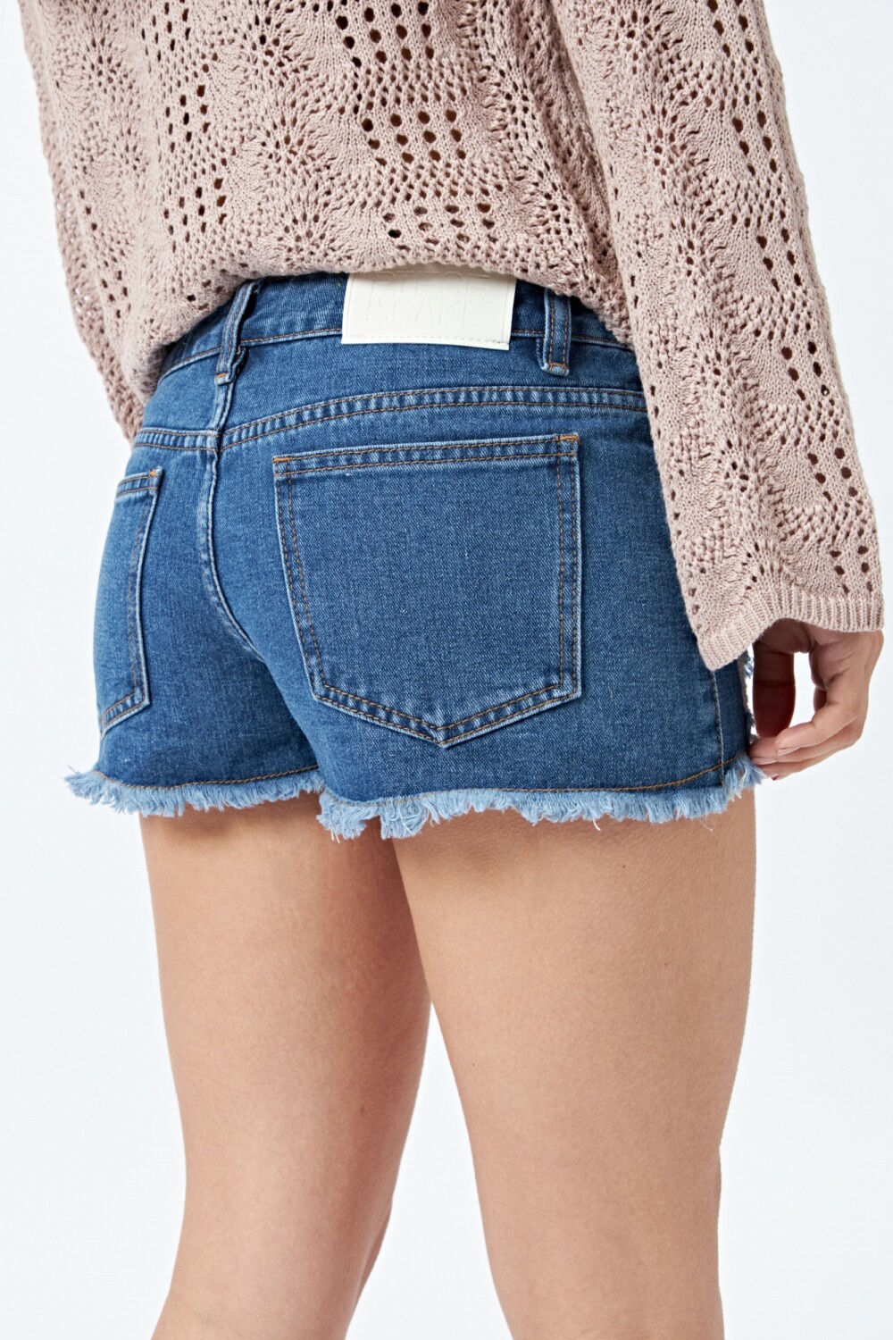 Short de tiro medio con diseño clásico de cinco bolsillos y ruedo desflecado. Confeccionado en denim suave y resistente, aporta un fit cómodo con un toque relajado. Los detalles gastados y deshilachados le suman actitud, ideal para looks de verano con remeras estampadas o tops tejidos.