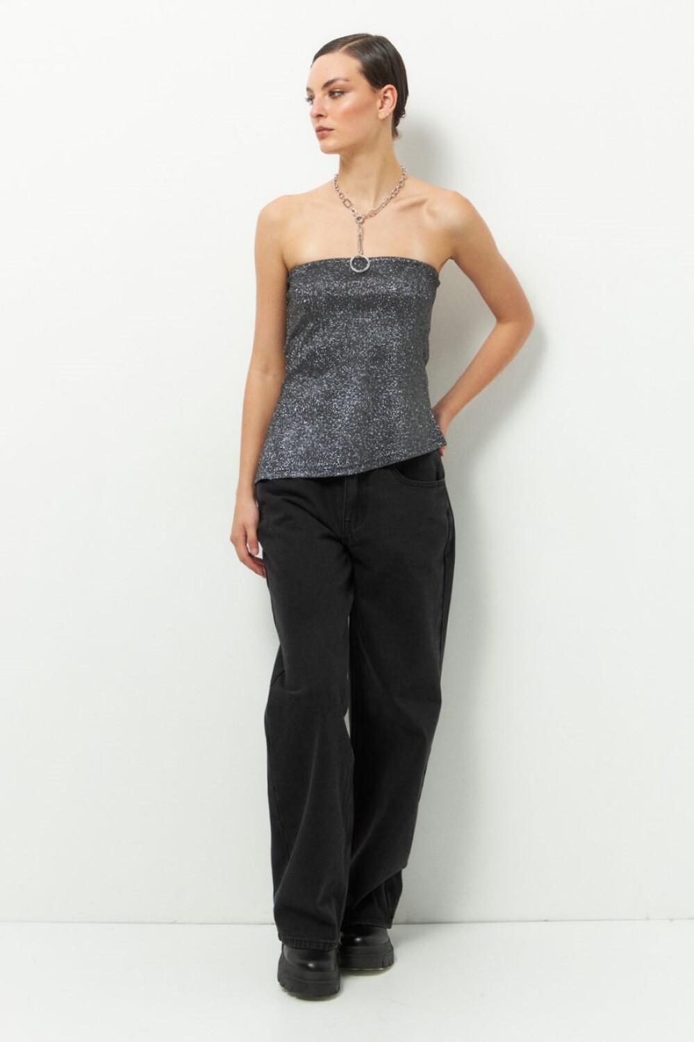 Top strapless asimétrico con abertura en uno de sus lados, de tela brillante, ideal para un look de noche. 425201710309002 https://www.pieceofcake.com.uy/catalogo/top-anami_425201710309_002