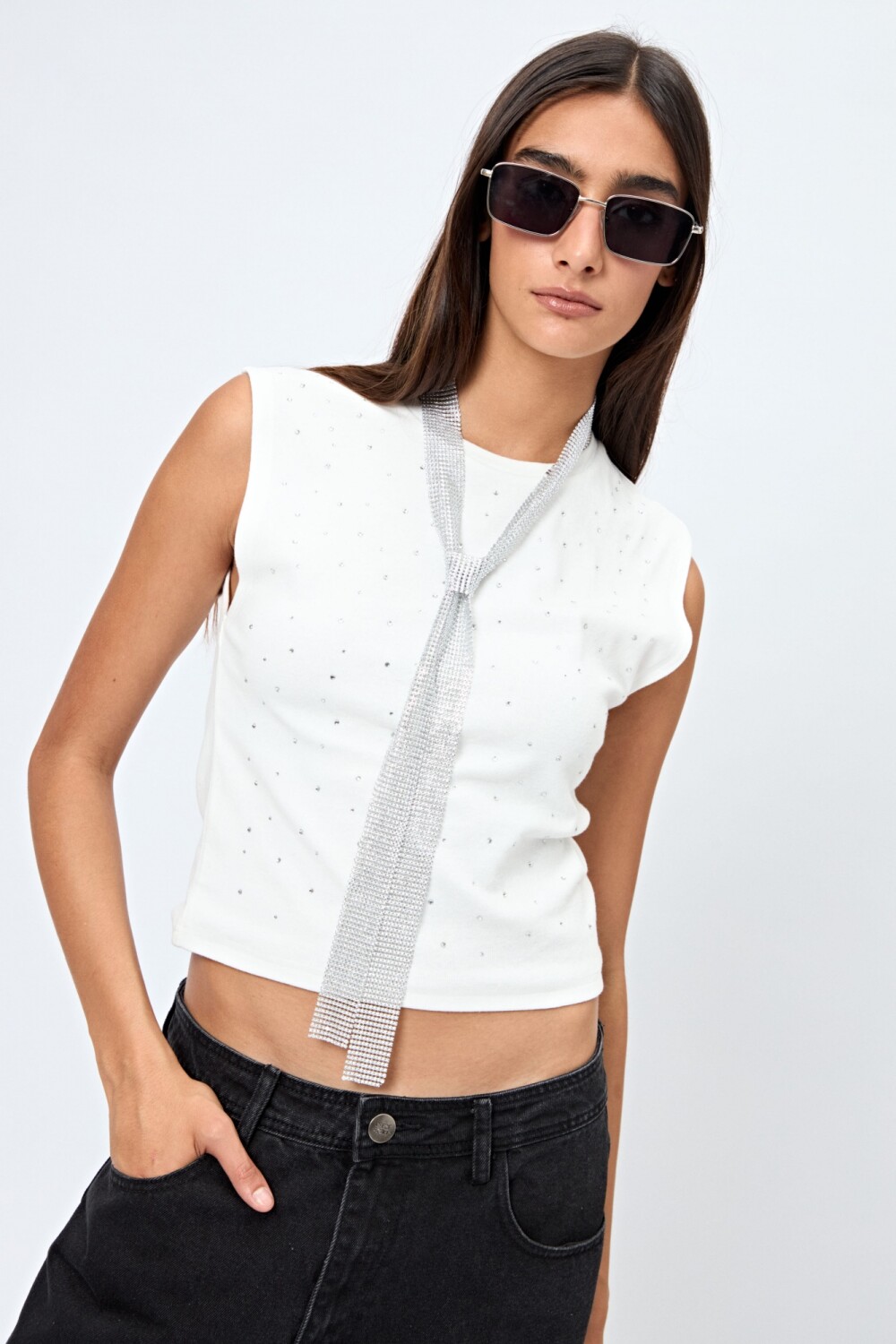Piece of Cake TOP TOMER TOP TOMER Top sin mangas con apliques de strass.