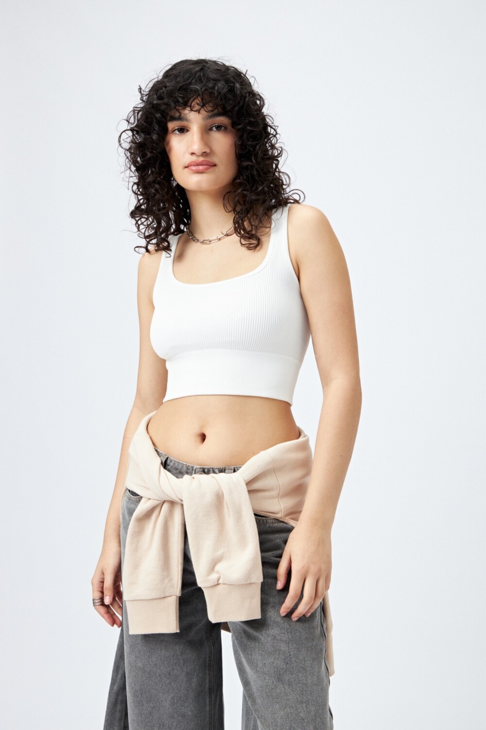 Top seamless de tejido ribb con escote cuadrado. Su diseño sin costuras ofrece máxima comodidad y una textura firme que acompaña sin ajustar. Clave para elevar cualquier look sporty o usar como base en capas más urbanas.